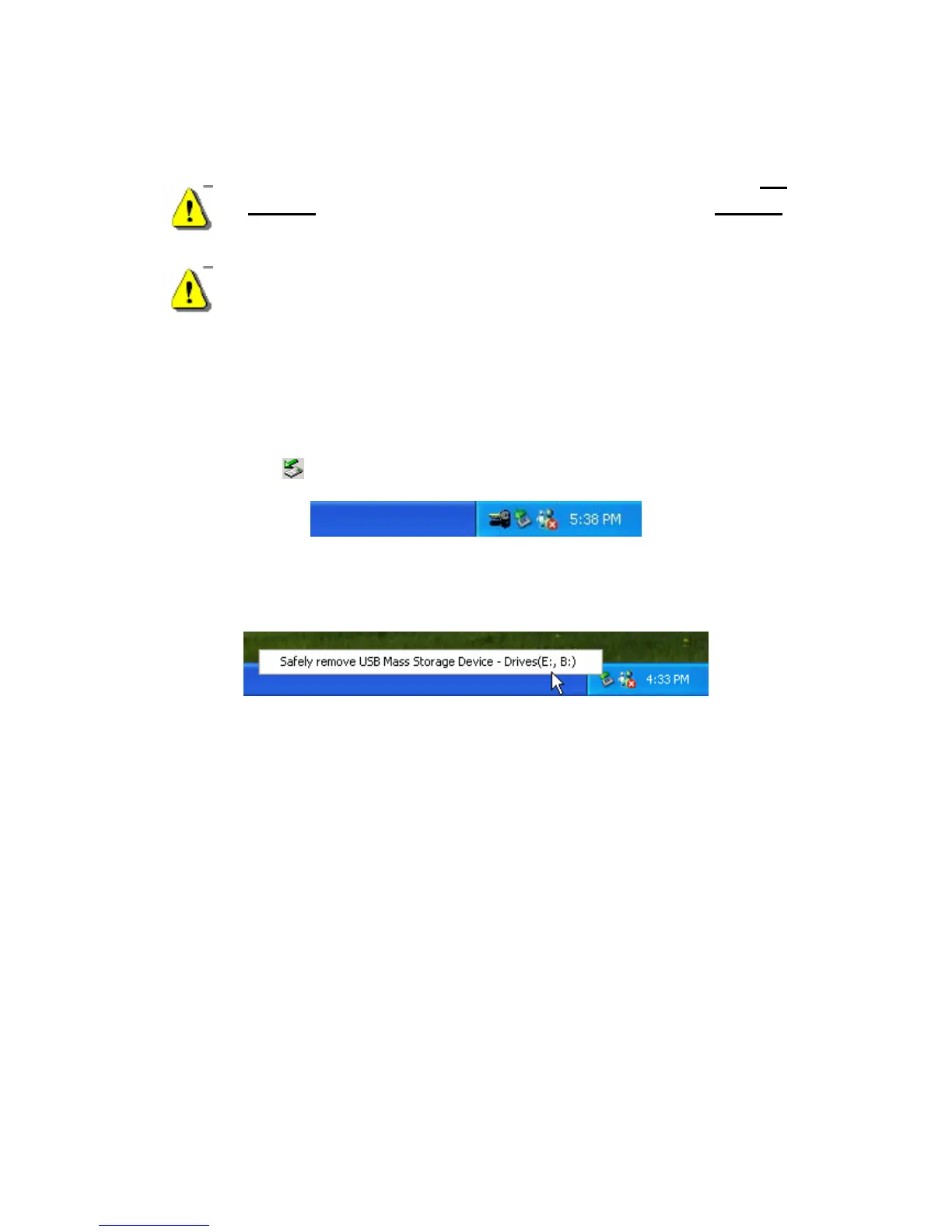2. The Safely remove USB Mass Storage Device pop-up menu will appear.