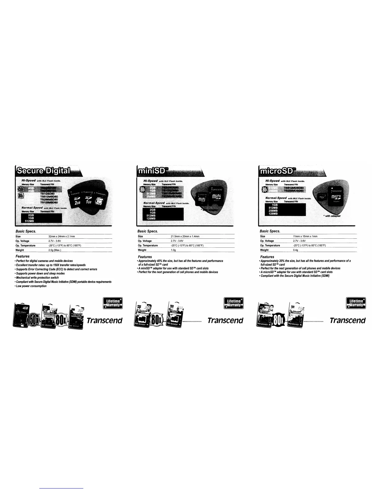 Transcend m2 - Memory Card Details; Secure Digital and miniSD Cards