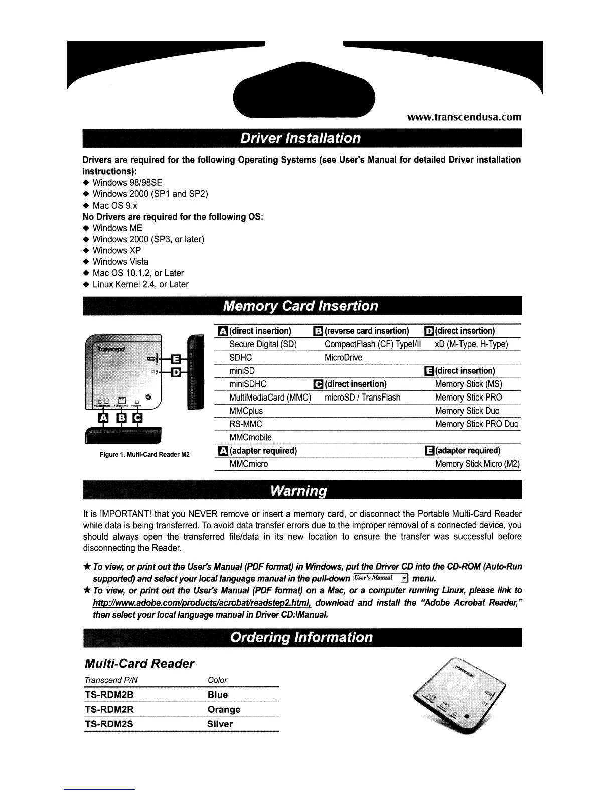 Transcend m2 - Driver Installation Guide; Windows Driver Setup; Mac OS Driver Setup; Linux Driver Setup