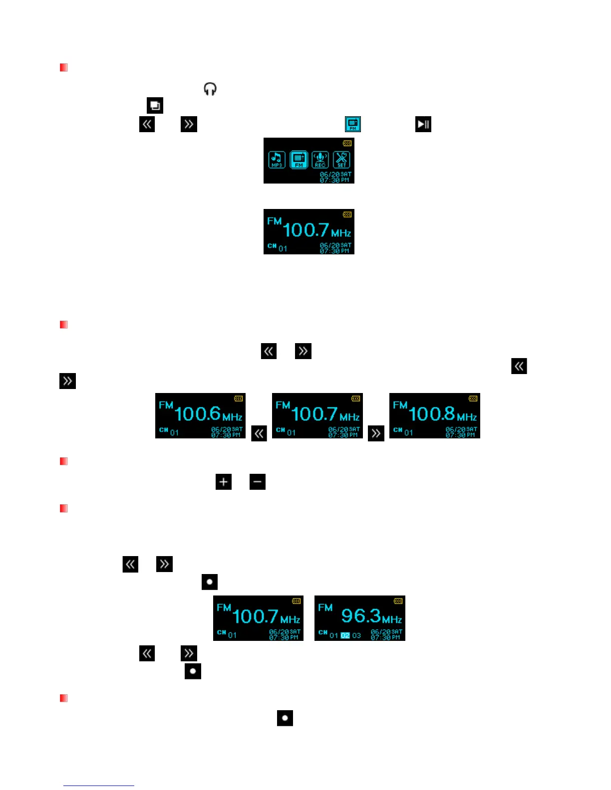 and buttons to select the “FM” icon