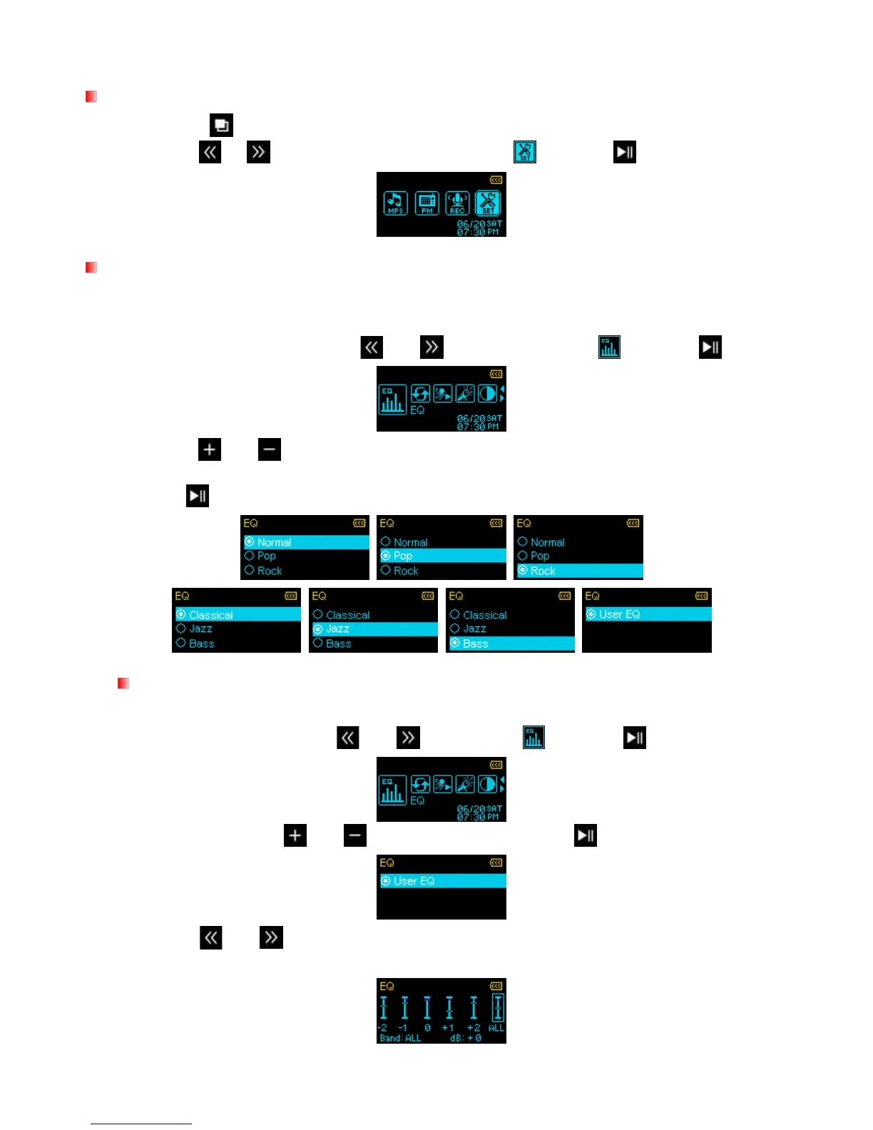2. Use the and buttons to select an equalizer mode. If music is playing, you will instantly hear