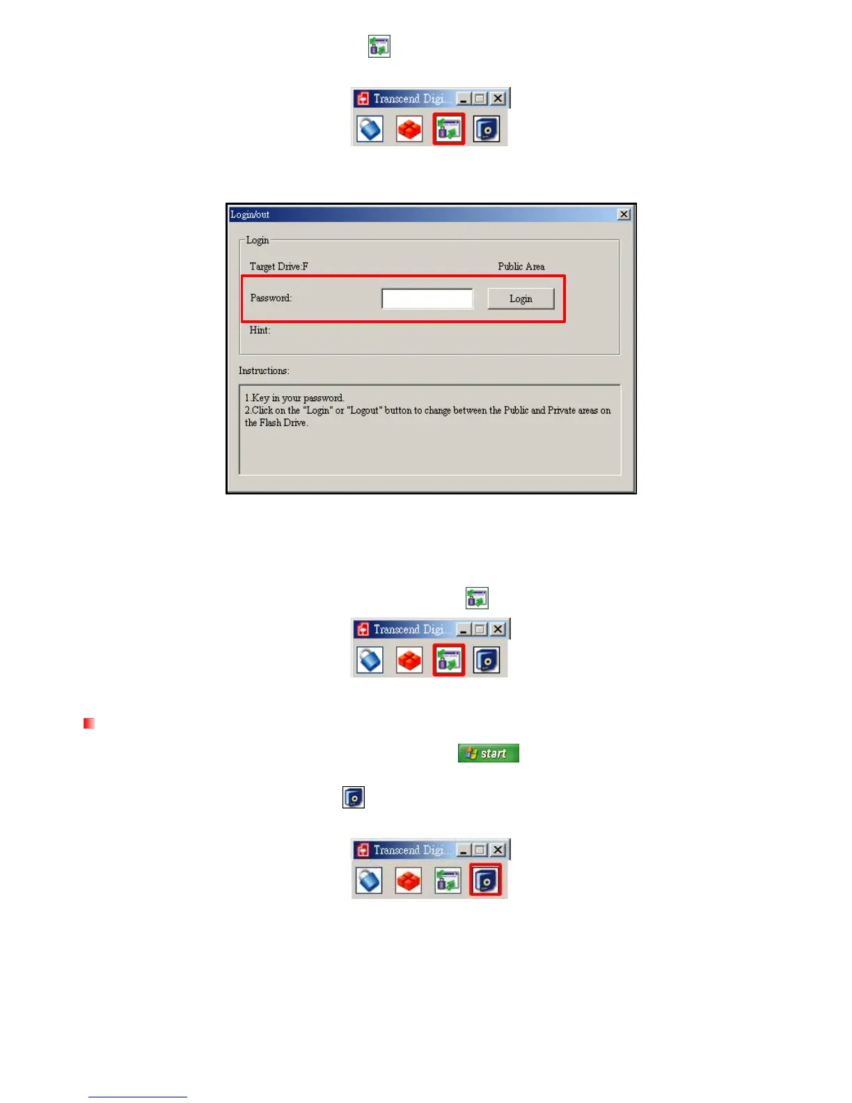 3. Click on the “Login/Logout” button in the Transcend Digital Music Player Utility window or Task
