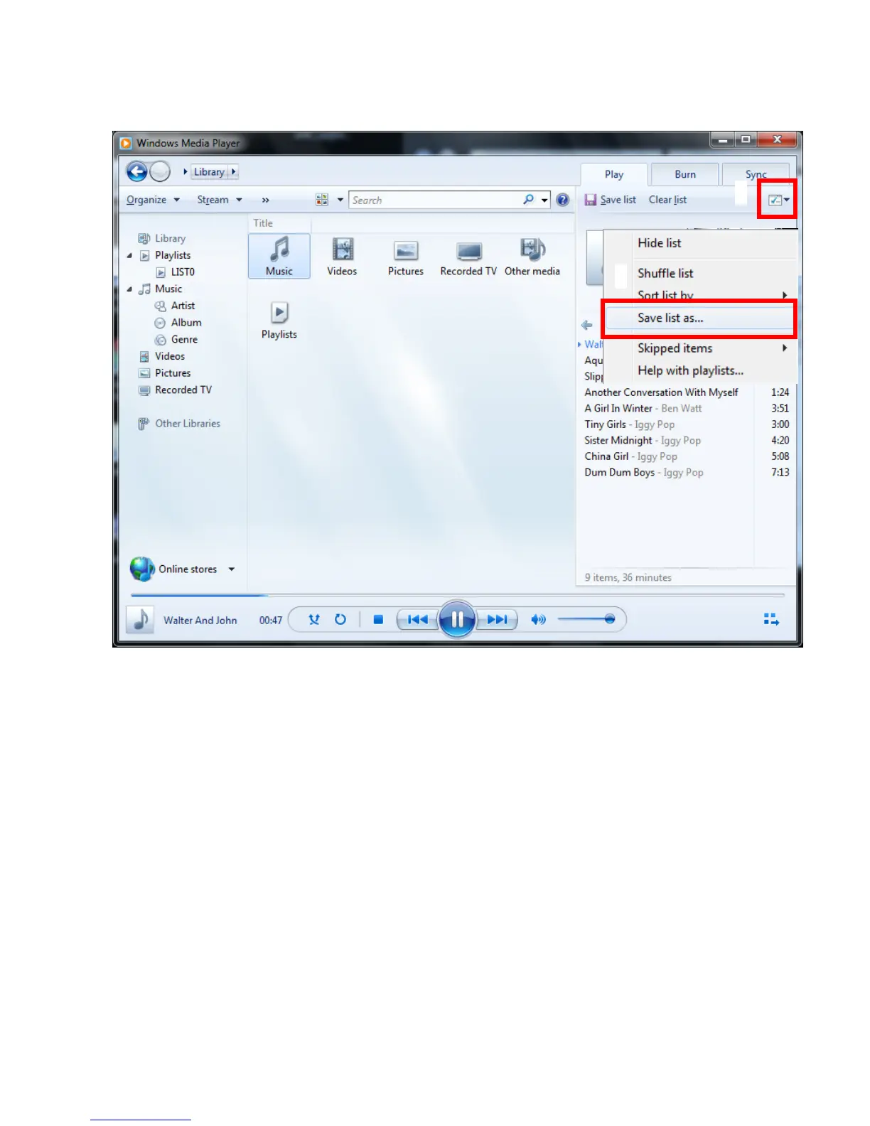 3. When your playlist is complete, click the Unsaved list” button at the top of the List pane and click