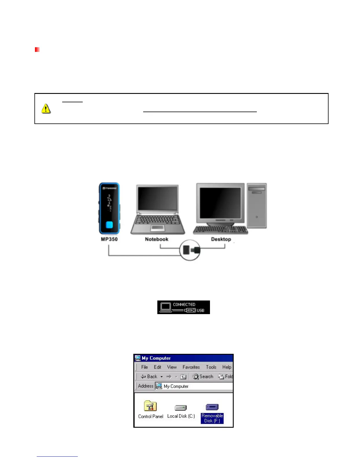 or record any music at this time. Please disconnect your MP350 from the computer when you want to use the