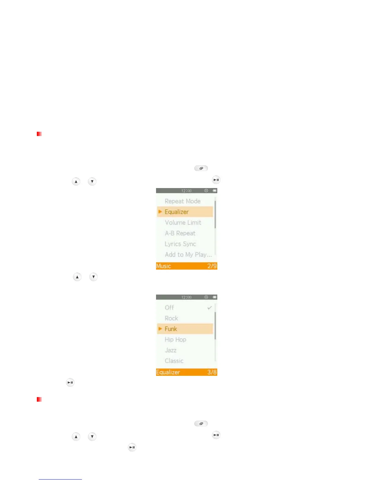 buttons to select an equalizer mode. If music is playing, you will instantly hear the