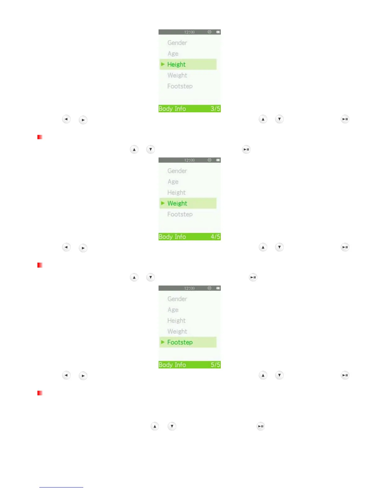 1. In the Body Info menu, use / to select “Footstep” and press .