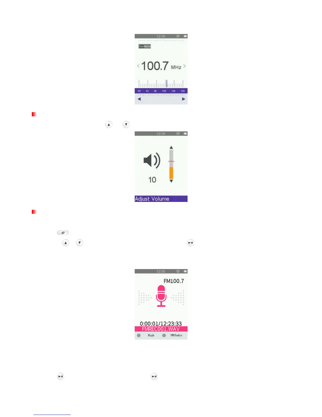 4. An automatically generated file name for your recording, along with the current record quality, FM frequency