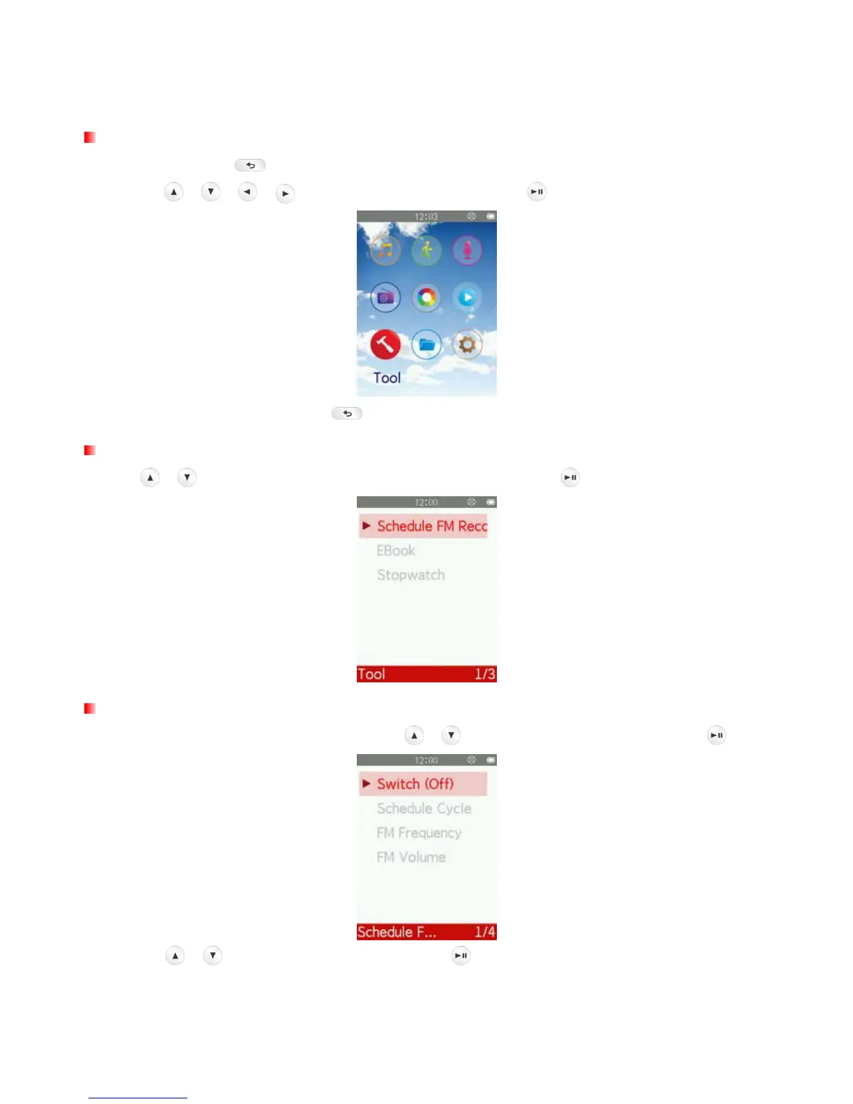 / buttons to select “Schedule FM Recording” and press .