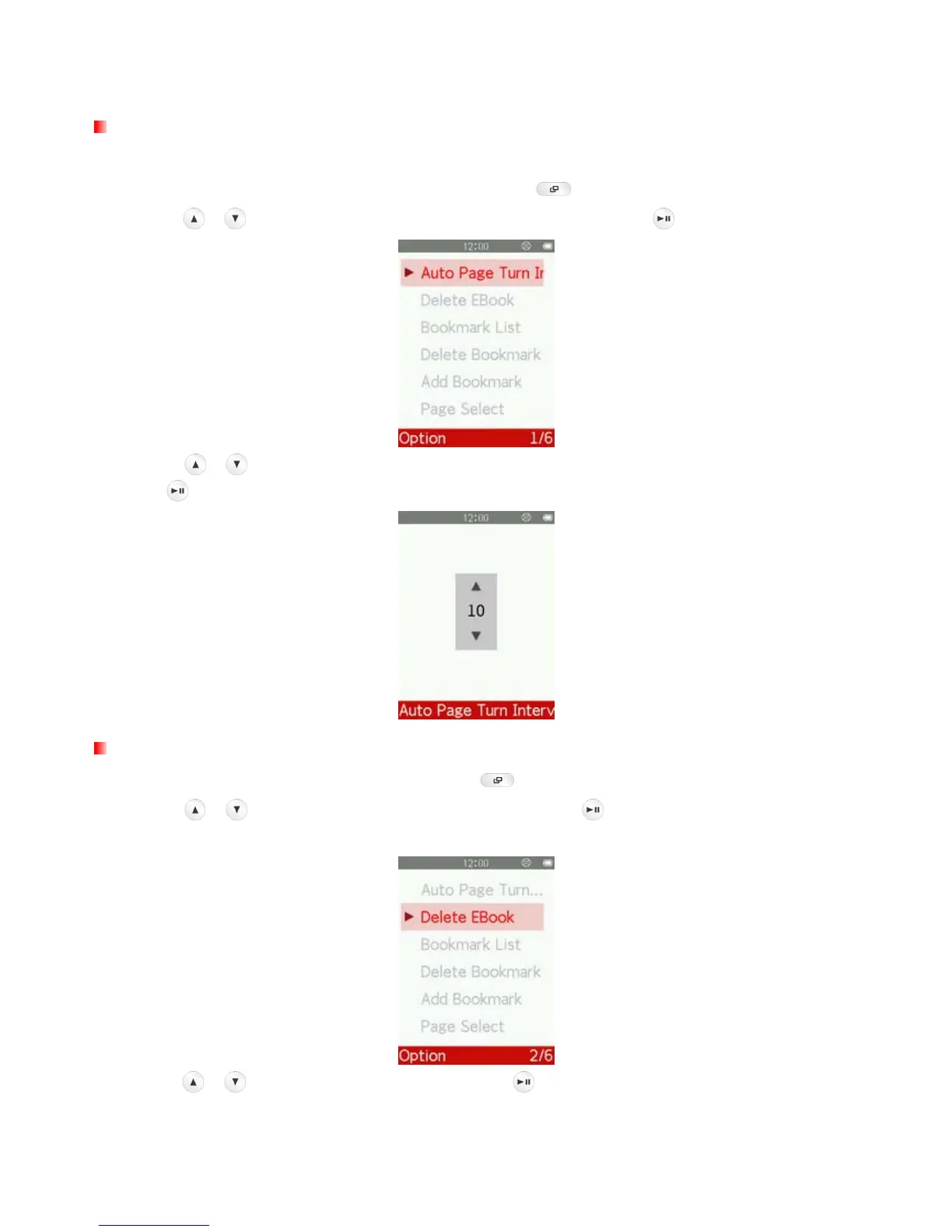 / buttons to select “Delete EBook” and press . A “Confirm File Delete” message
