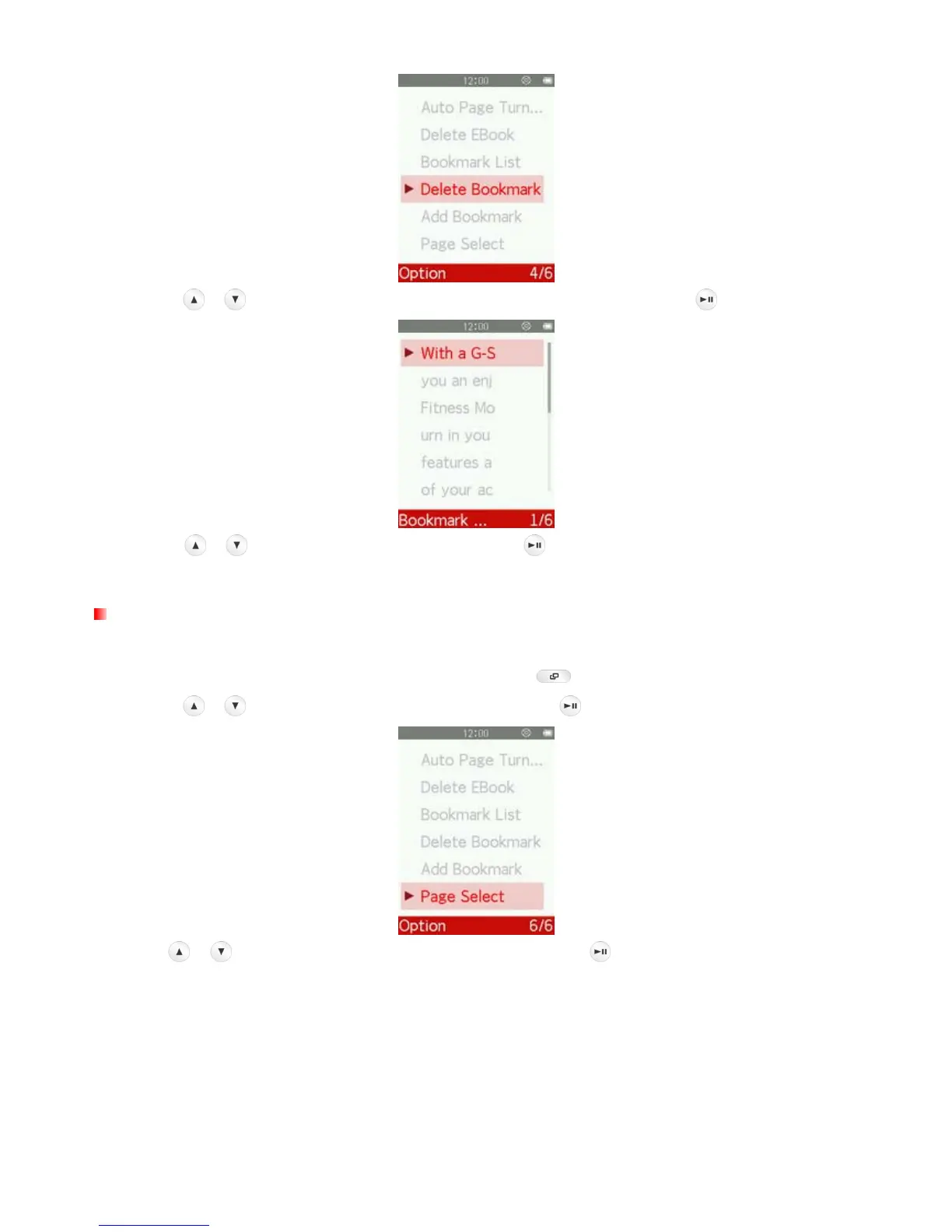 1. While reading a text file in the E-BOOKS mode, press the button to open the Options menu.