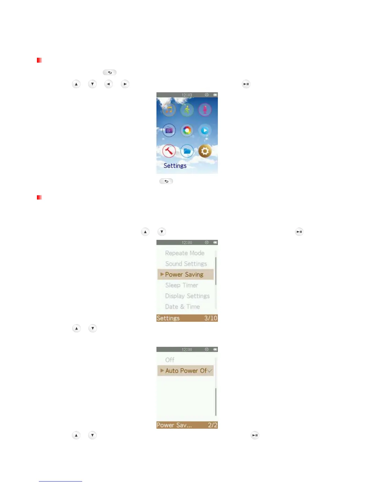 2. Use the / buttons to select “Auto Power off” to adjust auto power off timer or “Off” to turn off this