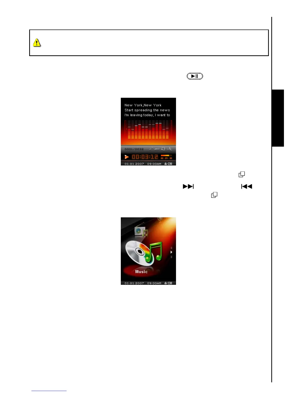 1. Press and Hold the “PLAY / PAUSE / POWER ON-OFF” button to Power ON the unit. The