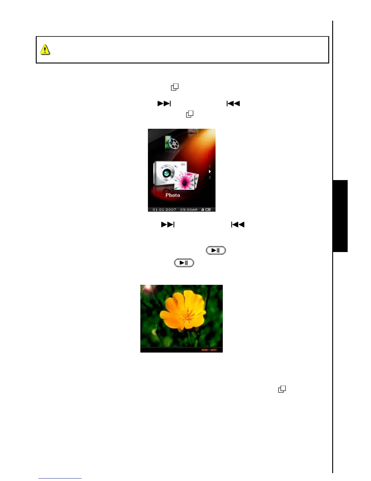 If you want to display Photos on your MP840 you must select a ‘.jpg’ or ‘.bmp’ photo file to