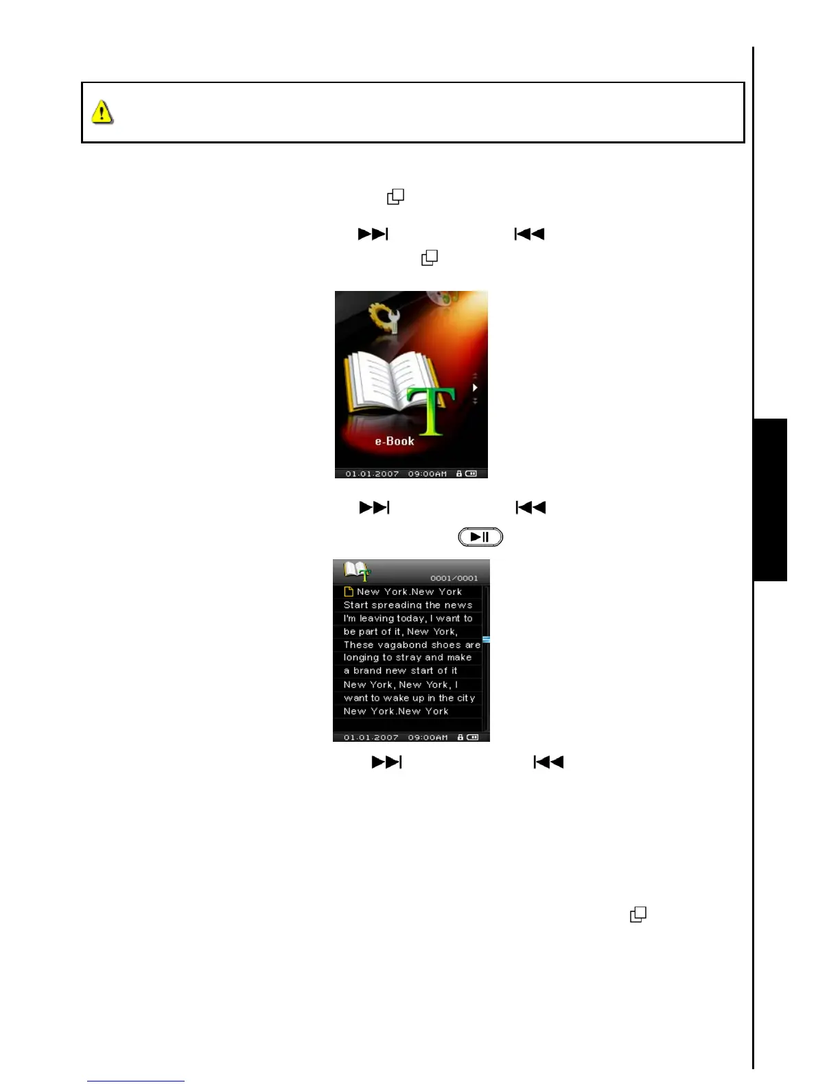 If you want to read E-books on your MP840 you must select a ‘.txt’ E-book file to transfer to