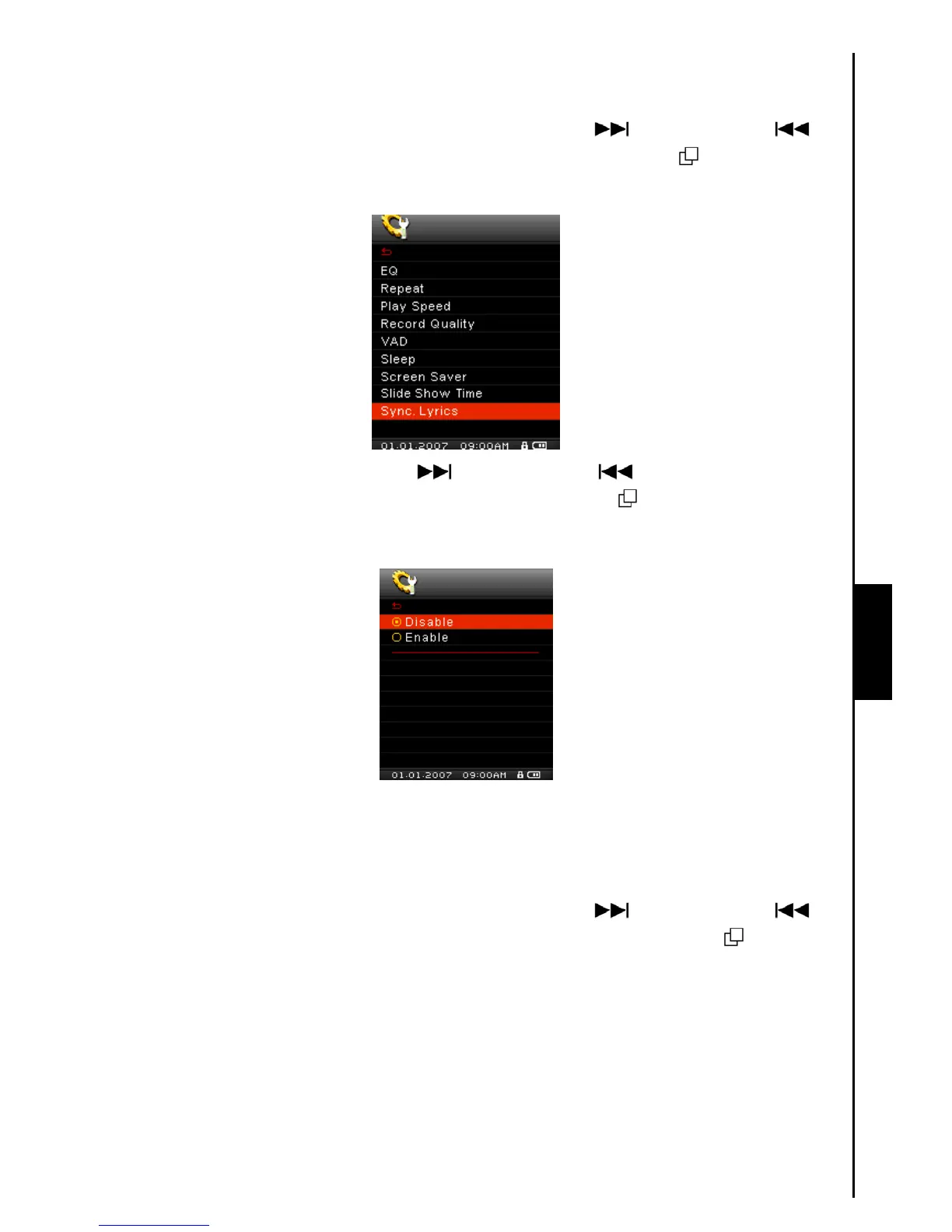 select the Sync. Lyrics item, then press the “Menu Switch” inwards (MENU)