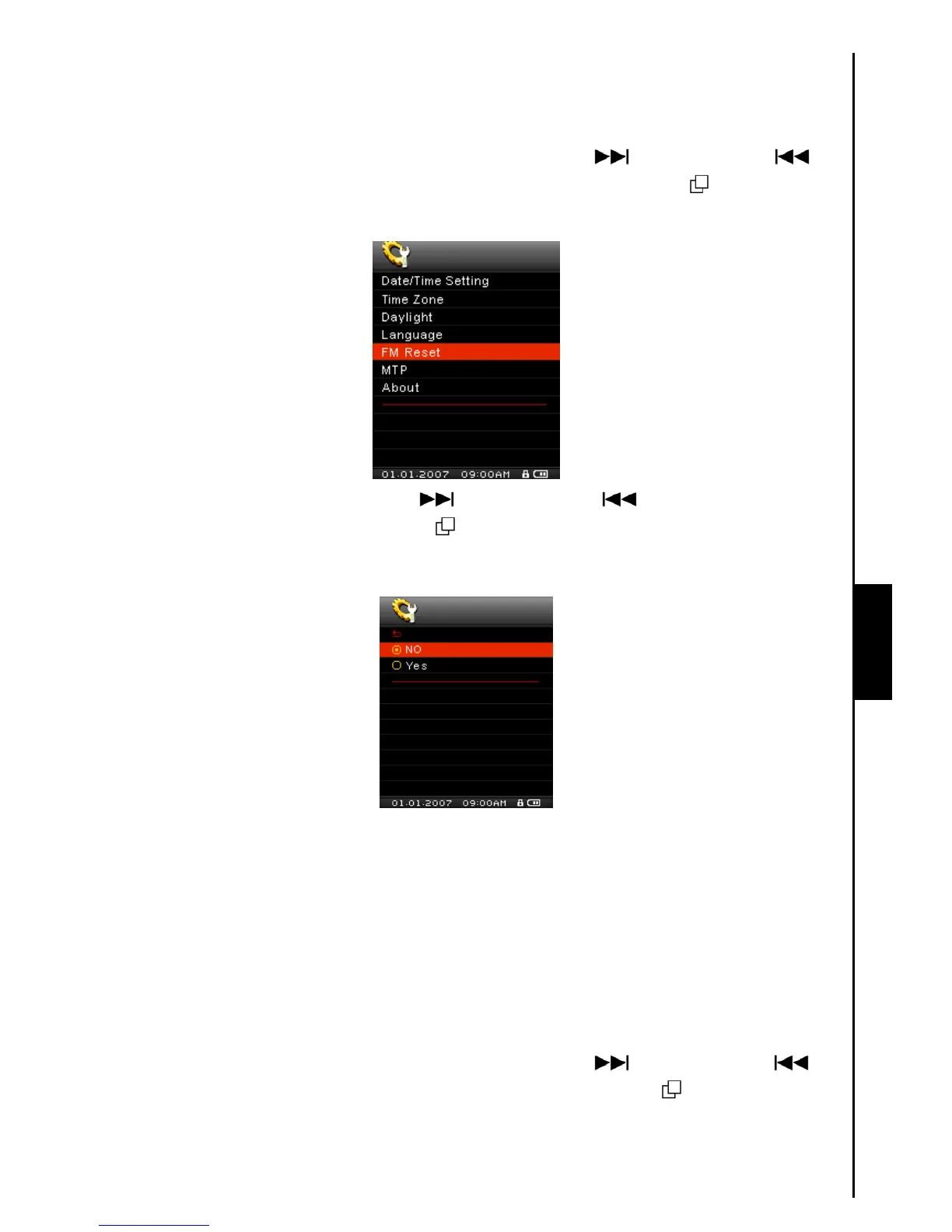 select the FM Reset item, then press the “Menu Switch” inwards (MENU)
