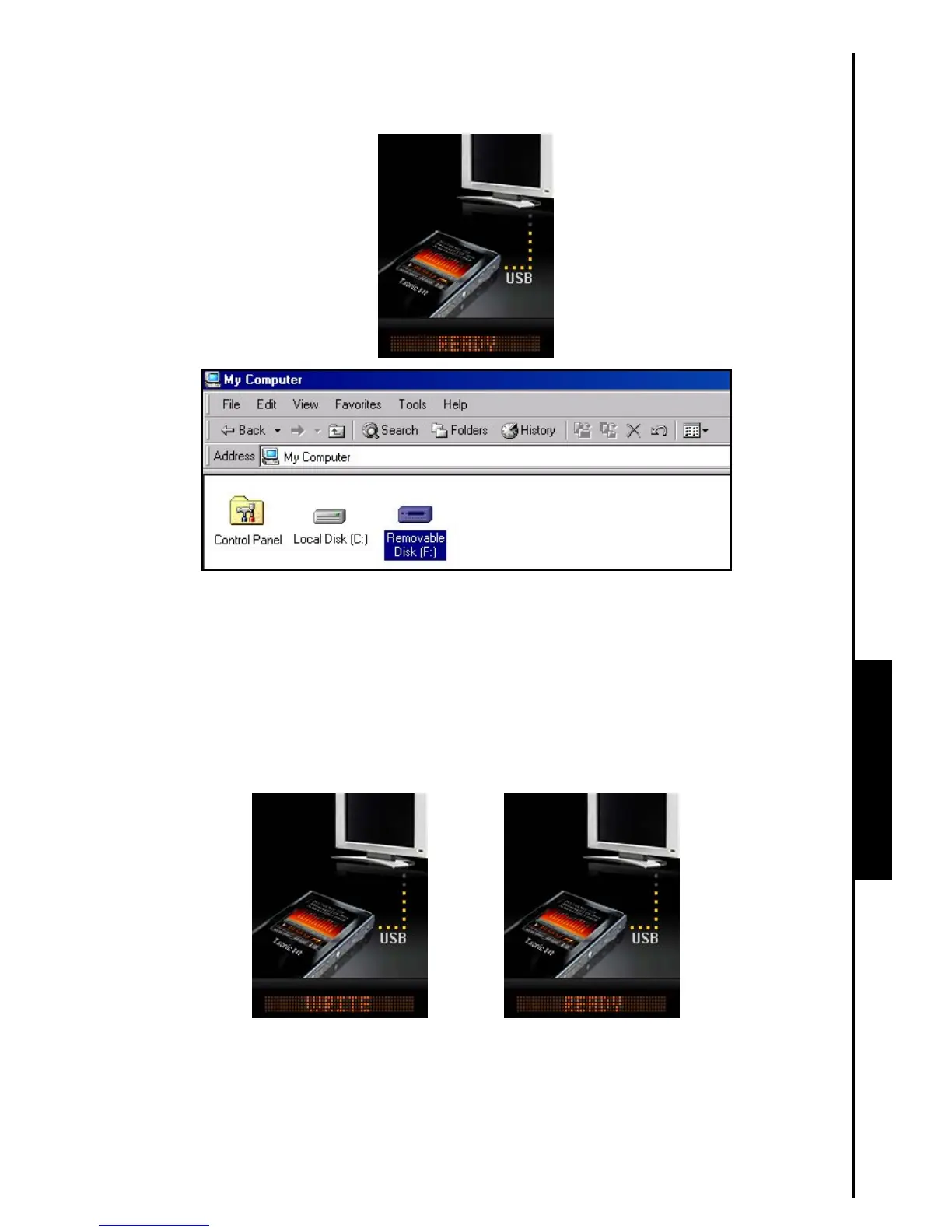3. After you connect the MP840 to a computer its screen will display a “READY” message, indicating