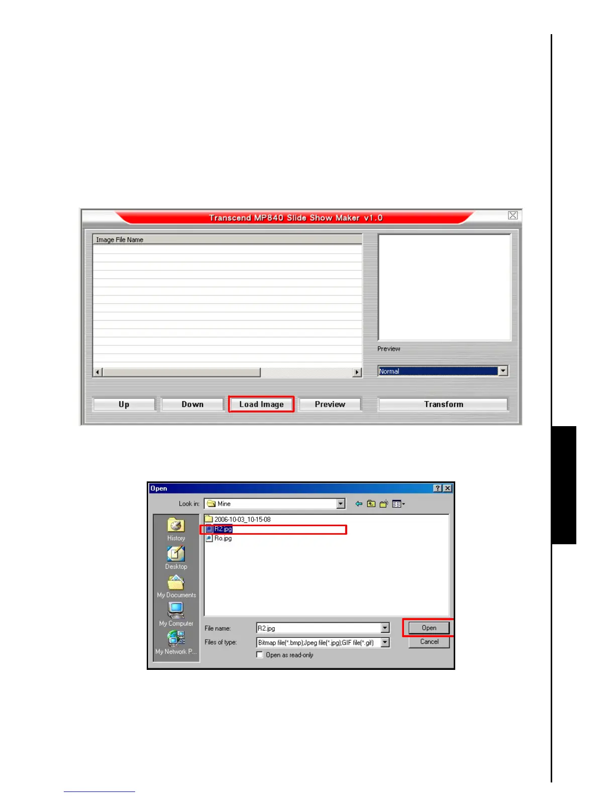 2. The Open window will appear. Select the “.JPG,” “.BMP,” or “.GIF” photo files that you want to