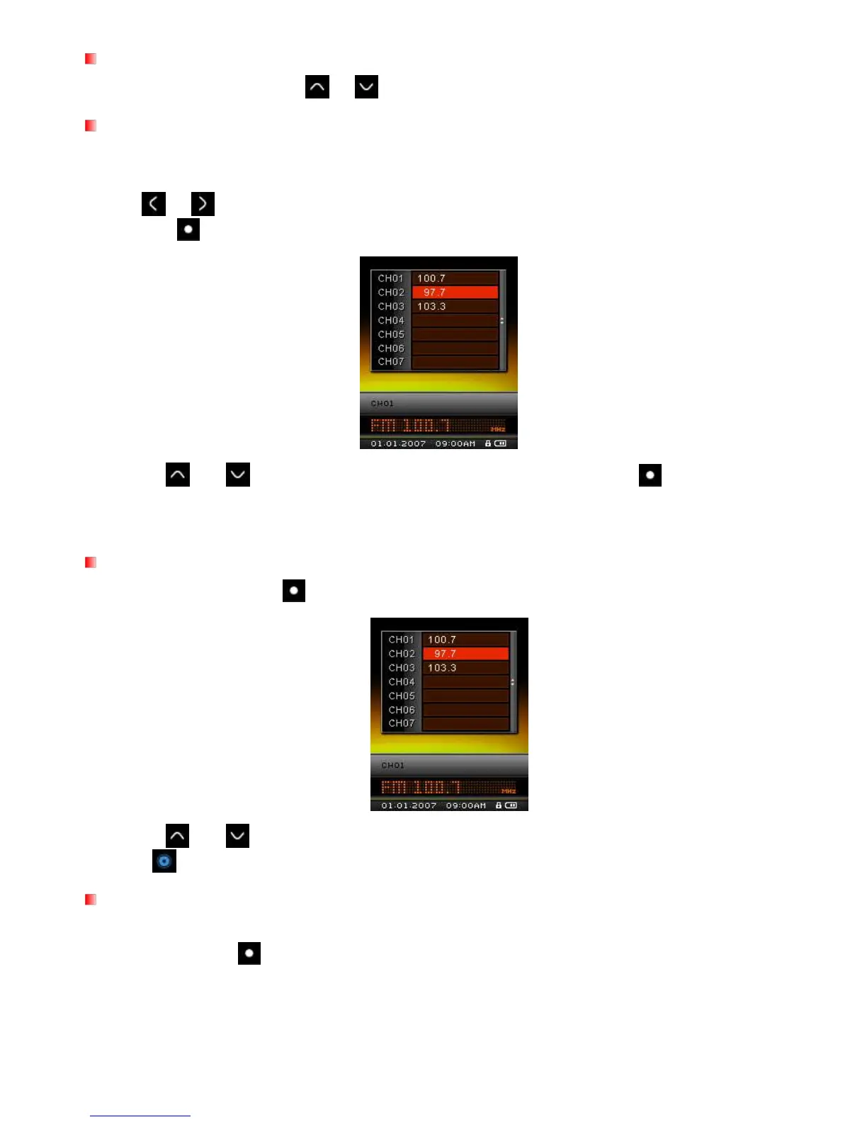 1. In the RADIO mode press to display your saved stations (CH01 to CH20).