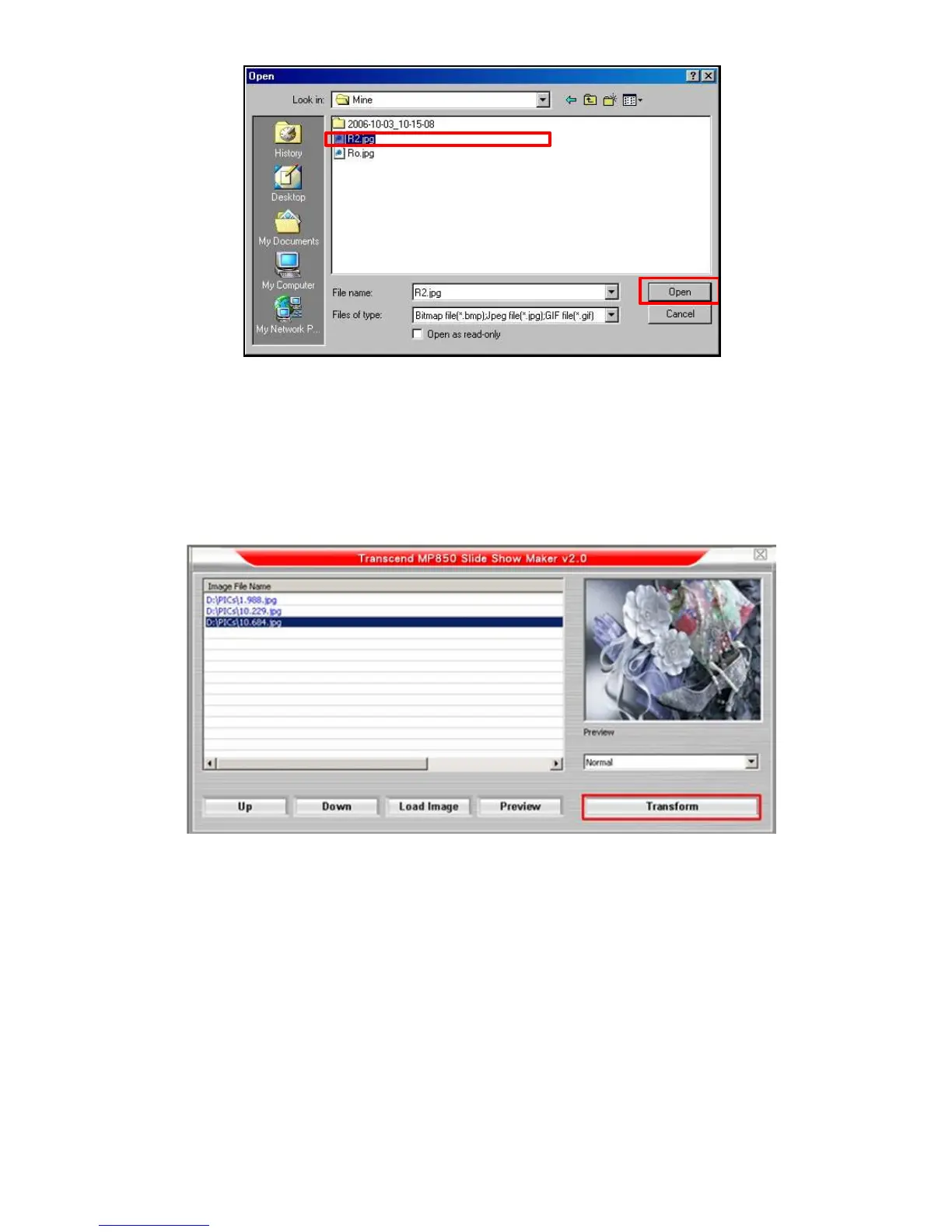 7. After you have loaded all images that you want to include in the slideshow, click the “Transform” button.