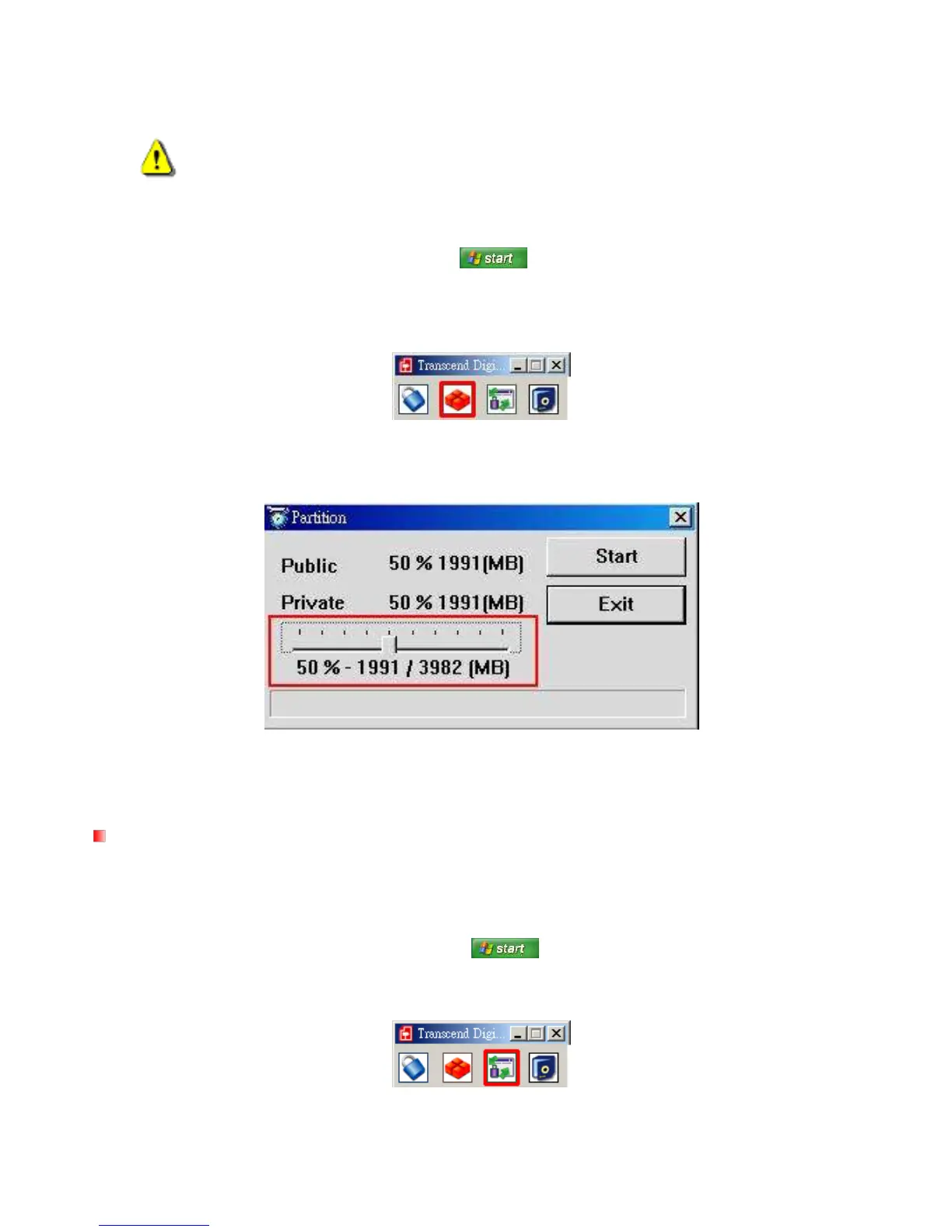 3. Click on the “Partition” button in the Transcend Digital Music Player Utility window (or the Transcend