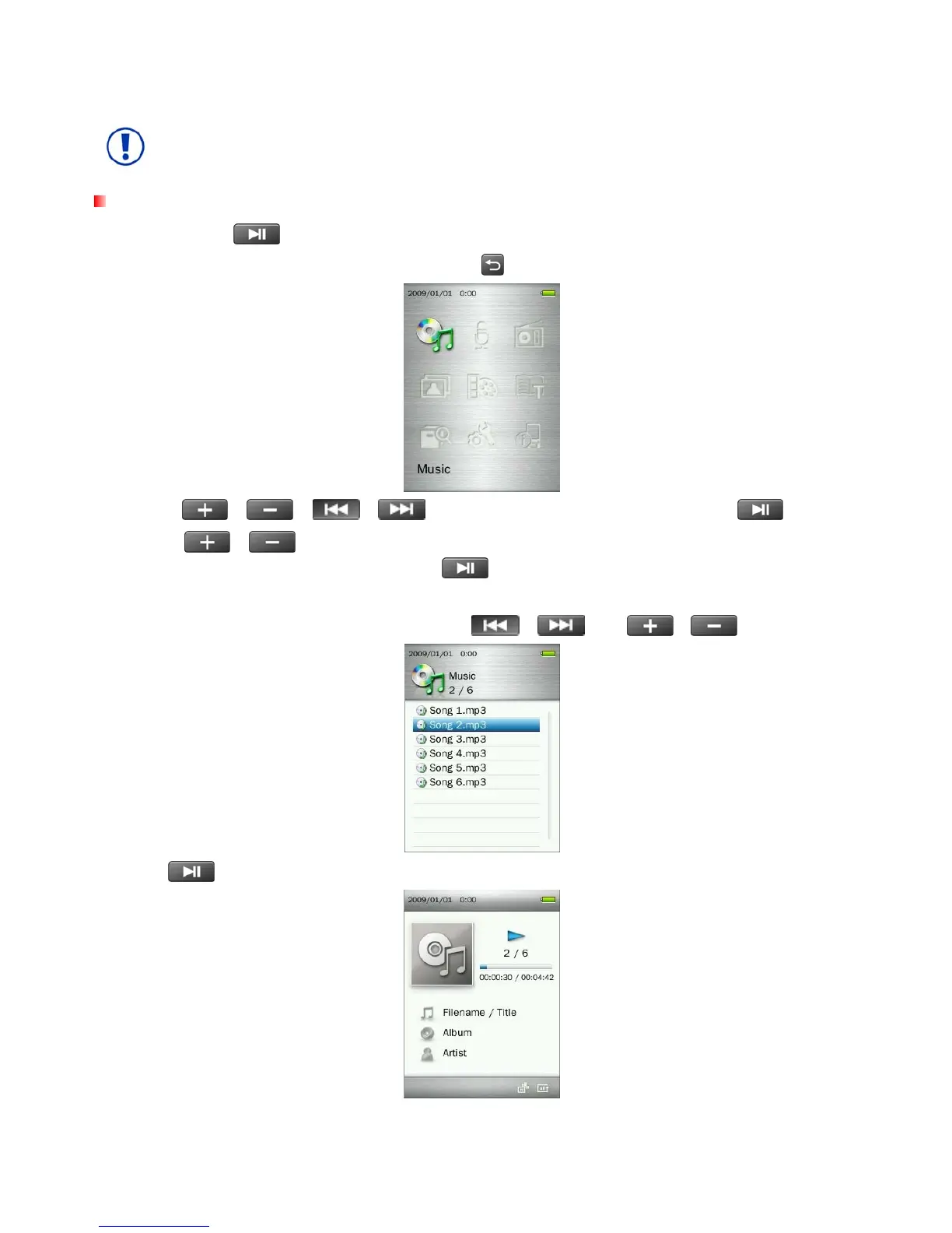 ο If the music player cannot find any compatible files, a “No Files Found” message will be displayed.