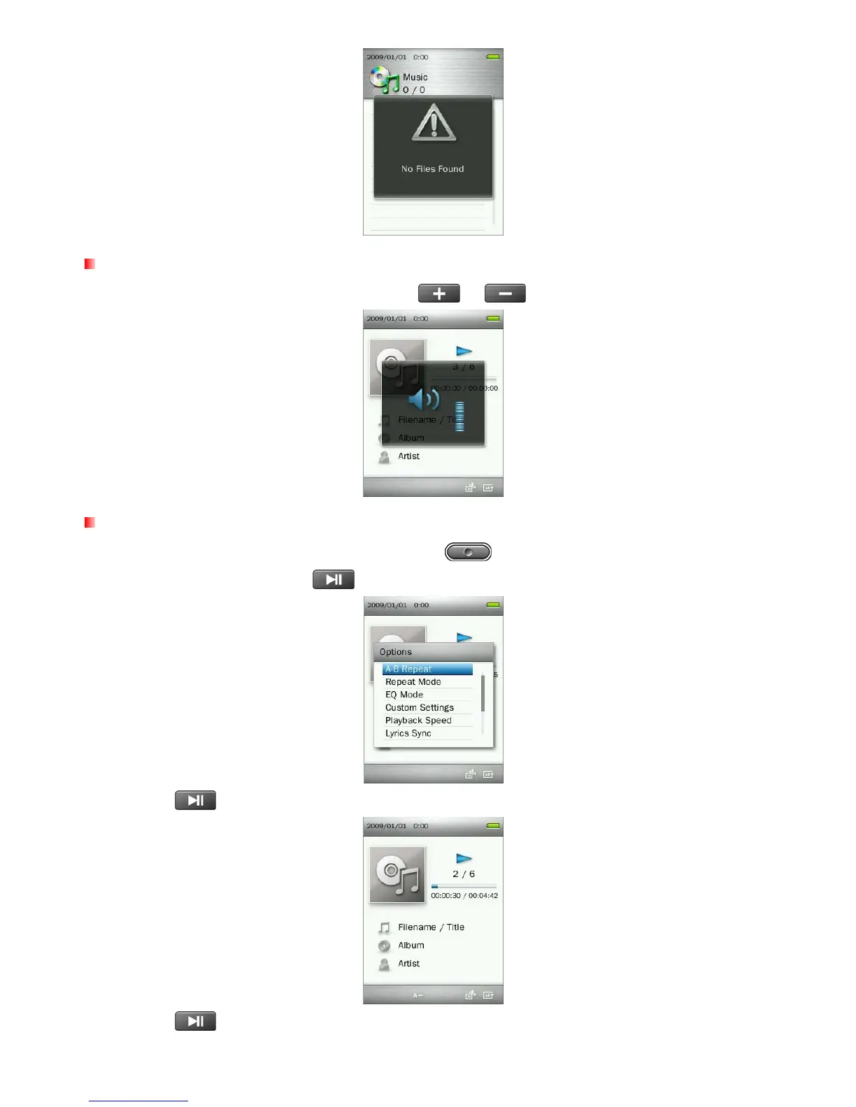 1. While playing a song in the MUSIC mode, press the button to open the Options menu.