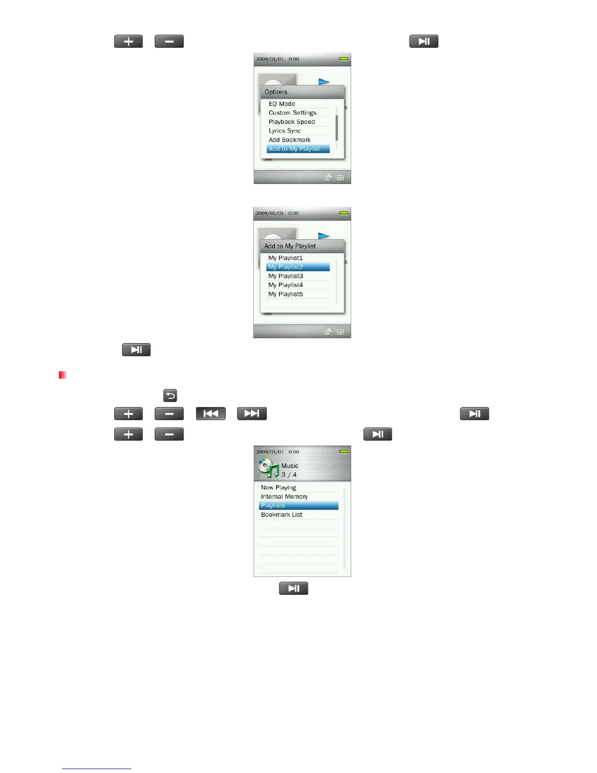 3. Select the playlist you want to add the song to. (My Playlist 1” ~ “My Playlist 5”)