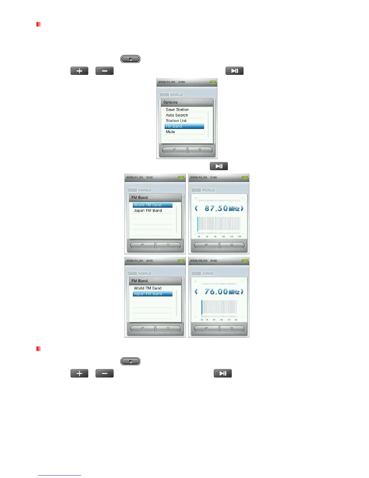 3. Select “World FM Band” or “Japan FM Band,” then press