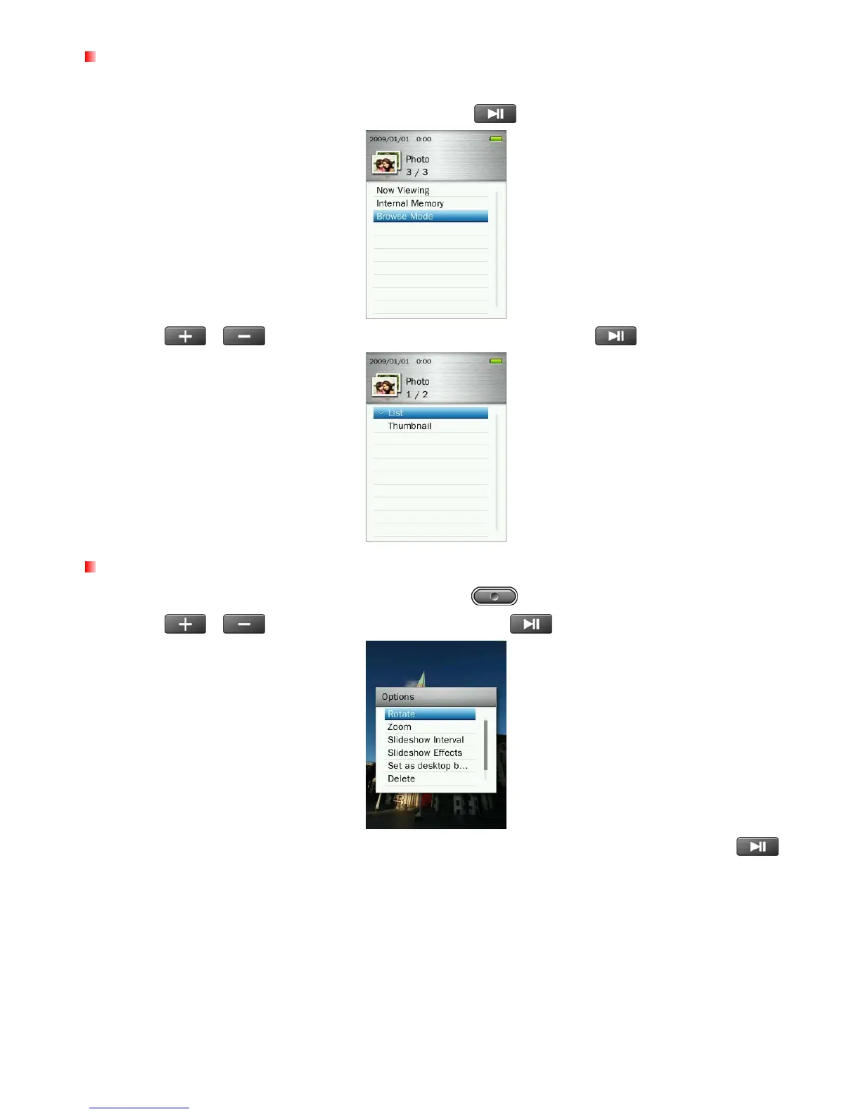 buttons to select “List” or “Thumbnail” and press