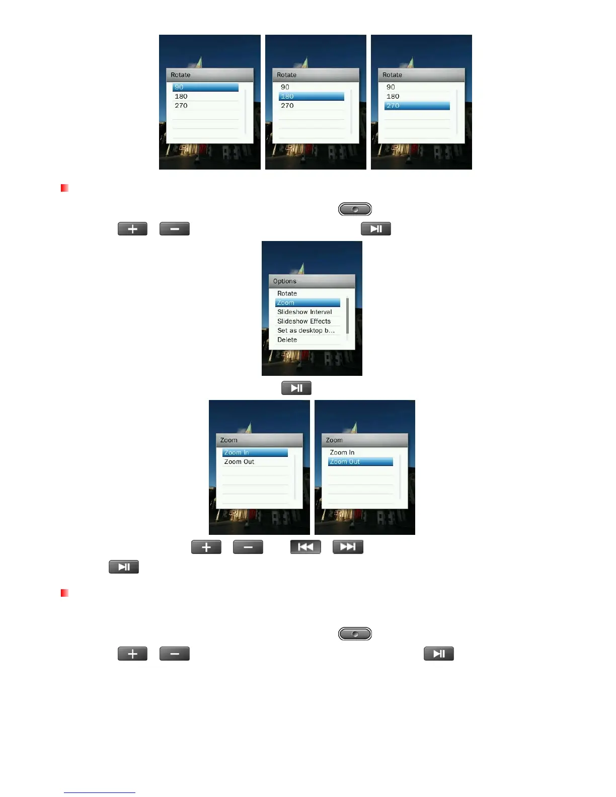 3. Select “Zoom In” or “Zoom Out” and press