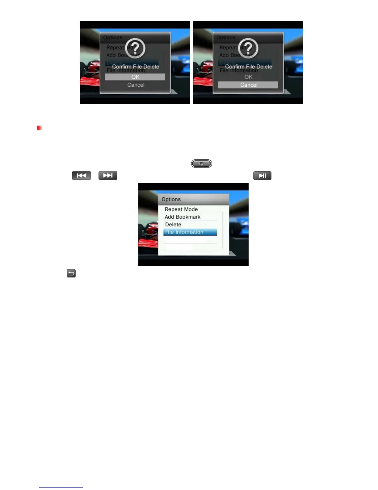 1. While viewing a file in the VIDEO mode, press the button to open the Options menu.