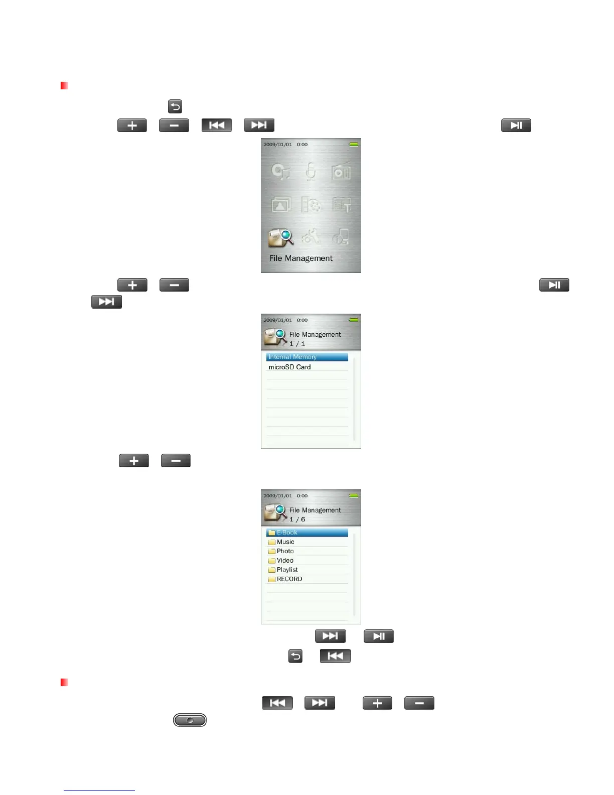 / buttons to select either “Internal Memory” or “microSD Card” and press