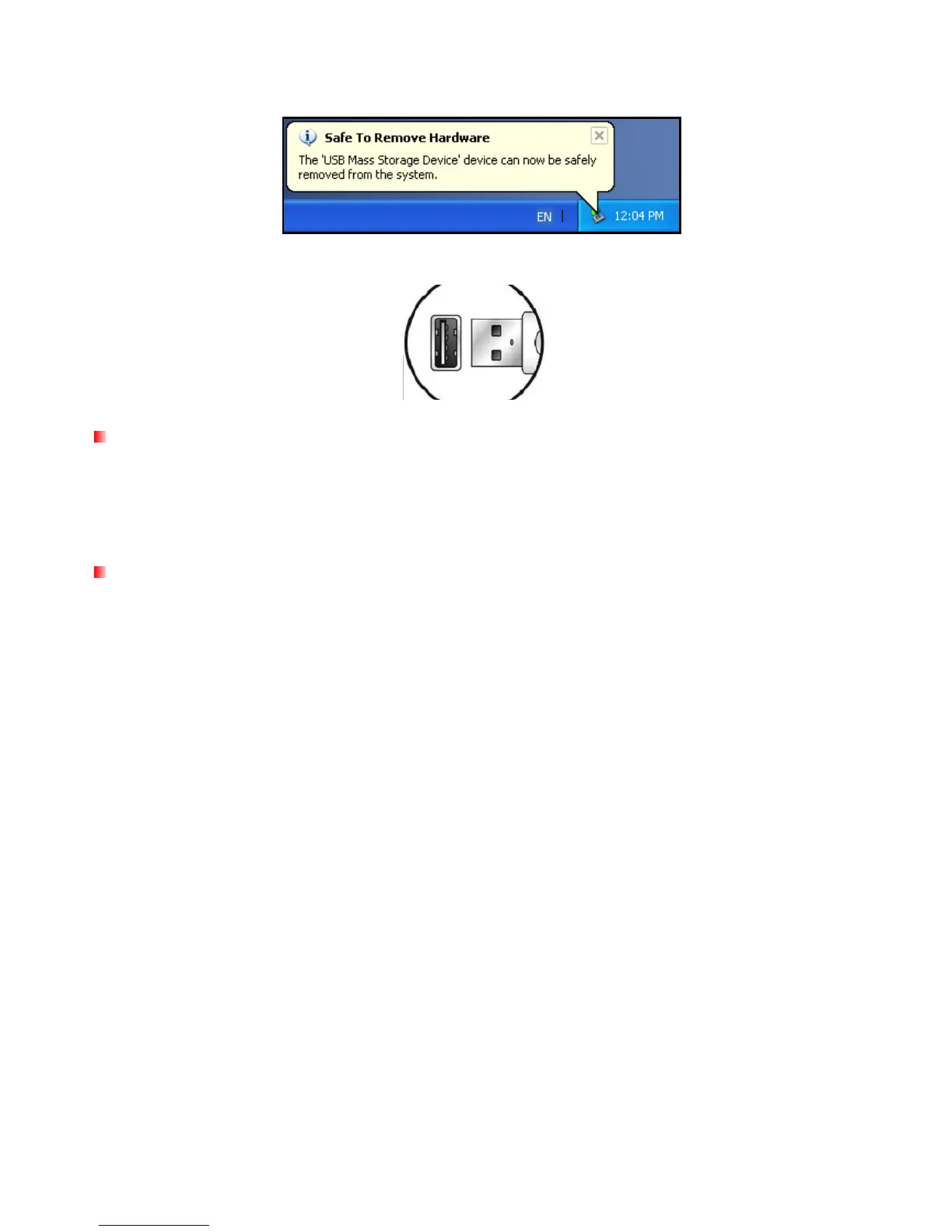 3. A window will appear stating “The ‘USB Mass Storage Device’ device can now be safely removed from