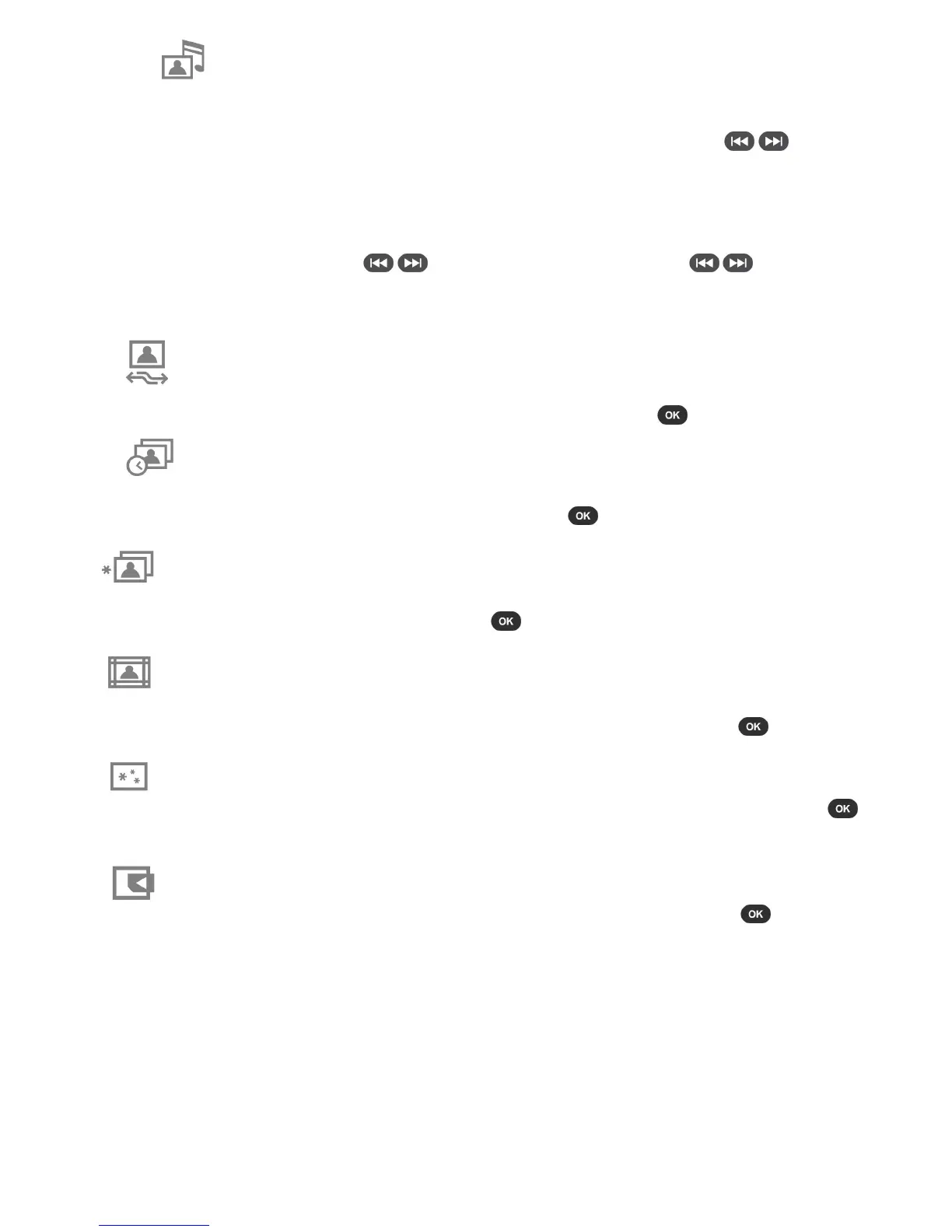 • On (Music): Turn on mp3 music. The Photo Frame will automatically find and play music