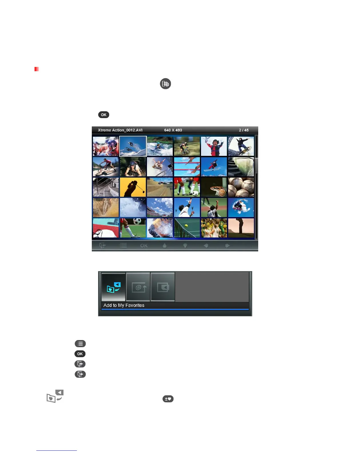 Add to / Remove from My Favorites ( ): Copy the currently selected video to the Photo