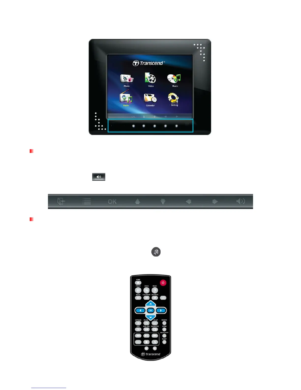 used for browsing through menus, selecting files, and accessing the Photo Frame’s numerous features.
