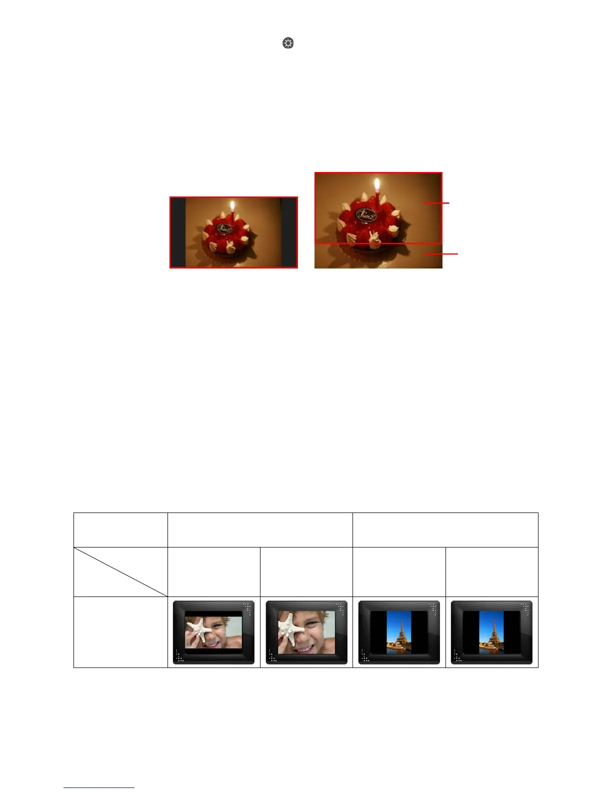 mentioned above, or the Zoom function. The way photos are displayed depends on the Photo Frame’s