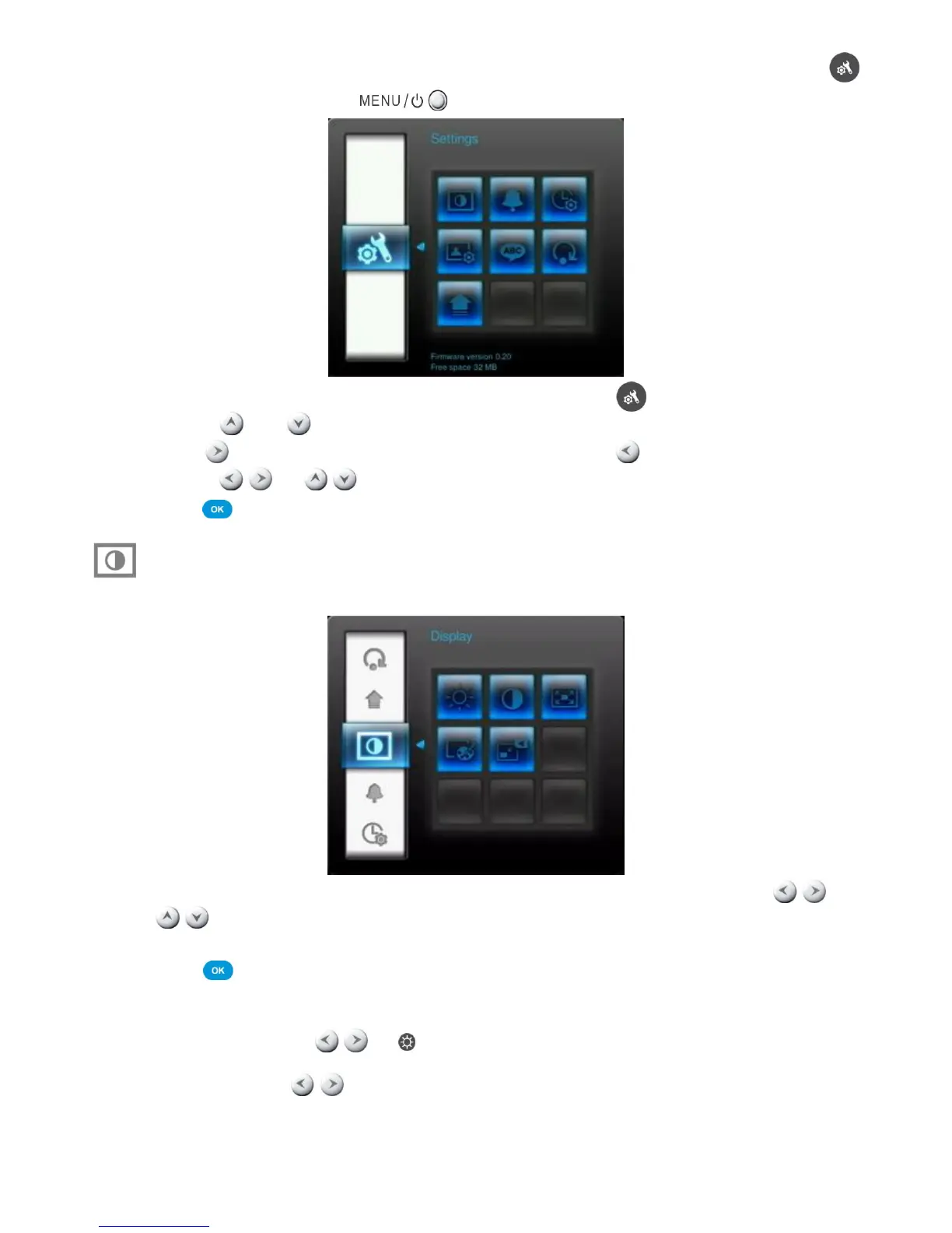 Contrast: Press / to make adjustments to the screen’s contrast.