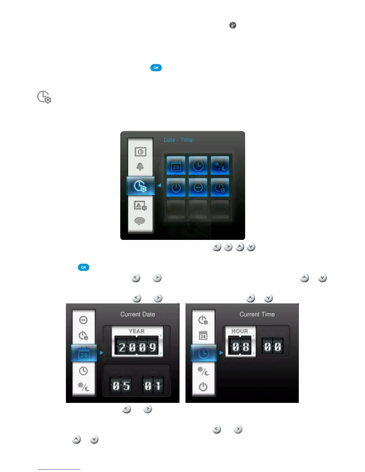 1. Select Date/Time from the Settings menu, and use the / / / buttons to select between