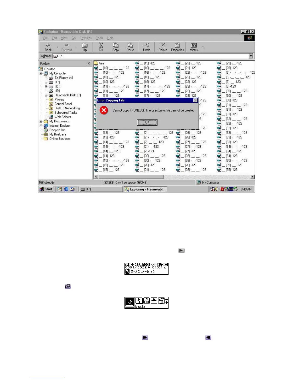 2. If there are no MP3 or WMA files available, the “No Files” message will be displayed on the