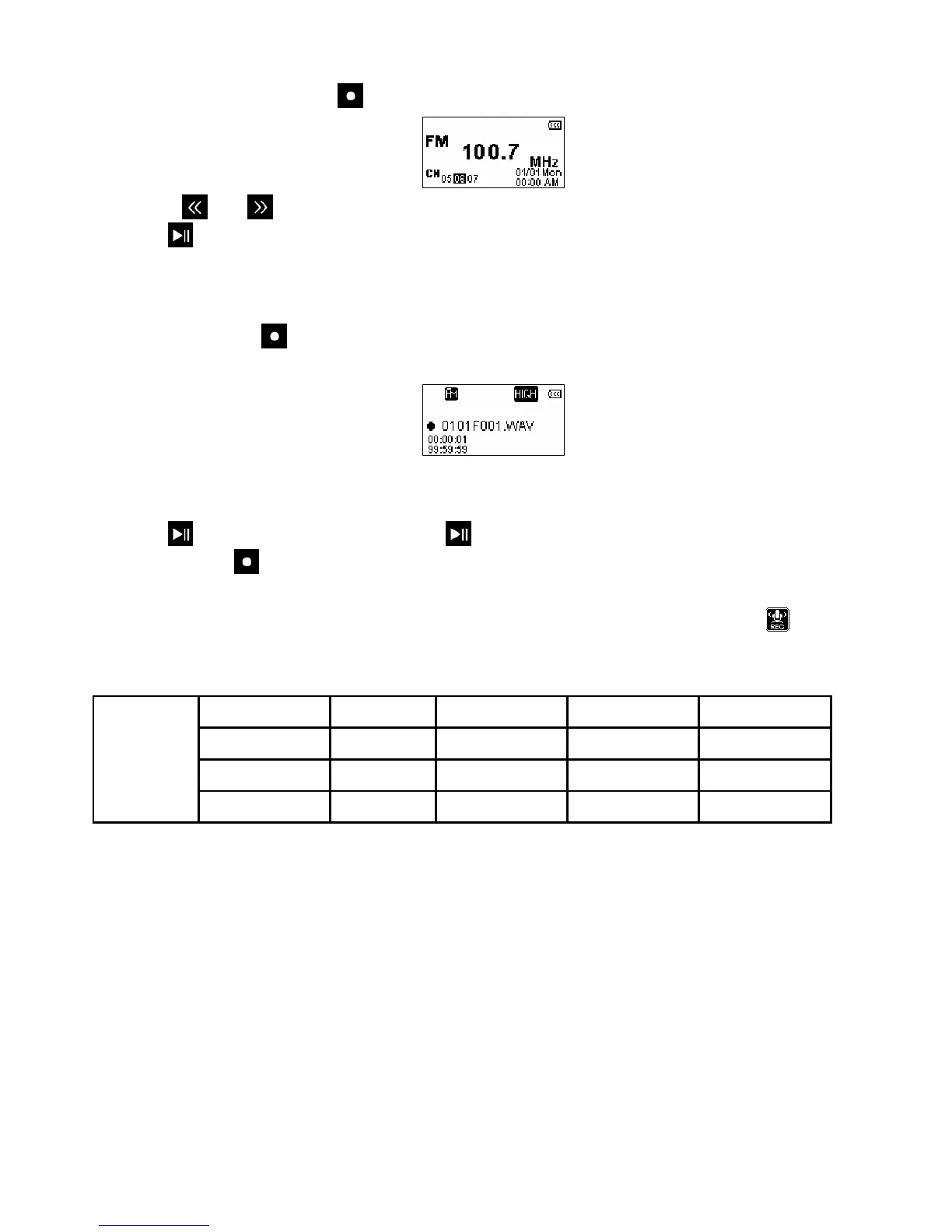 ¾ FM recordings can be accessed by using the File Navigator in RECORD mode