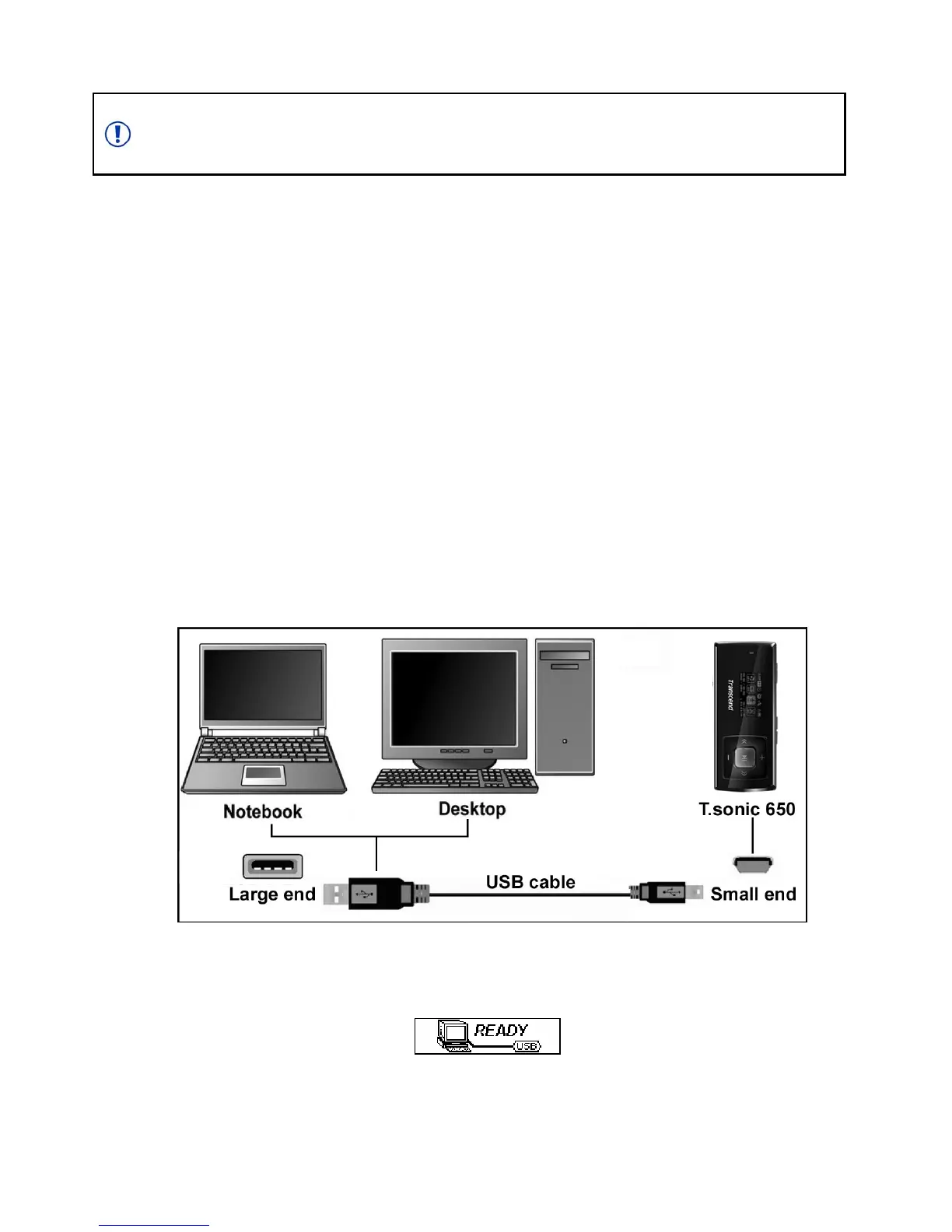2. When connected to a computer the T.sonic 650’s screen will display a “READY” message, indicating that