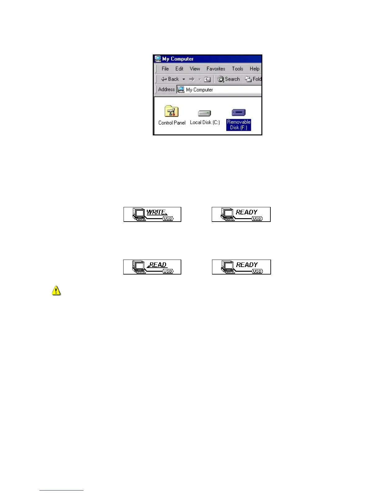 If you are using Windows® a new Removable Disk drive with a newly assigned drive letter representing the