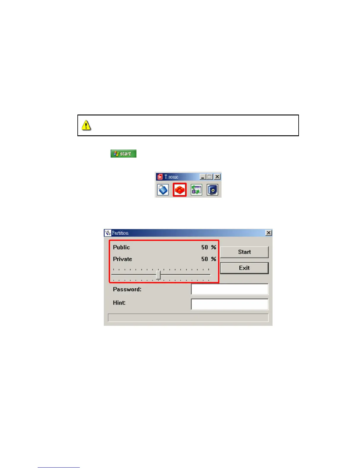 This feature allows you to create a secure password-protected area on the T.sonic for your personal files. You