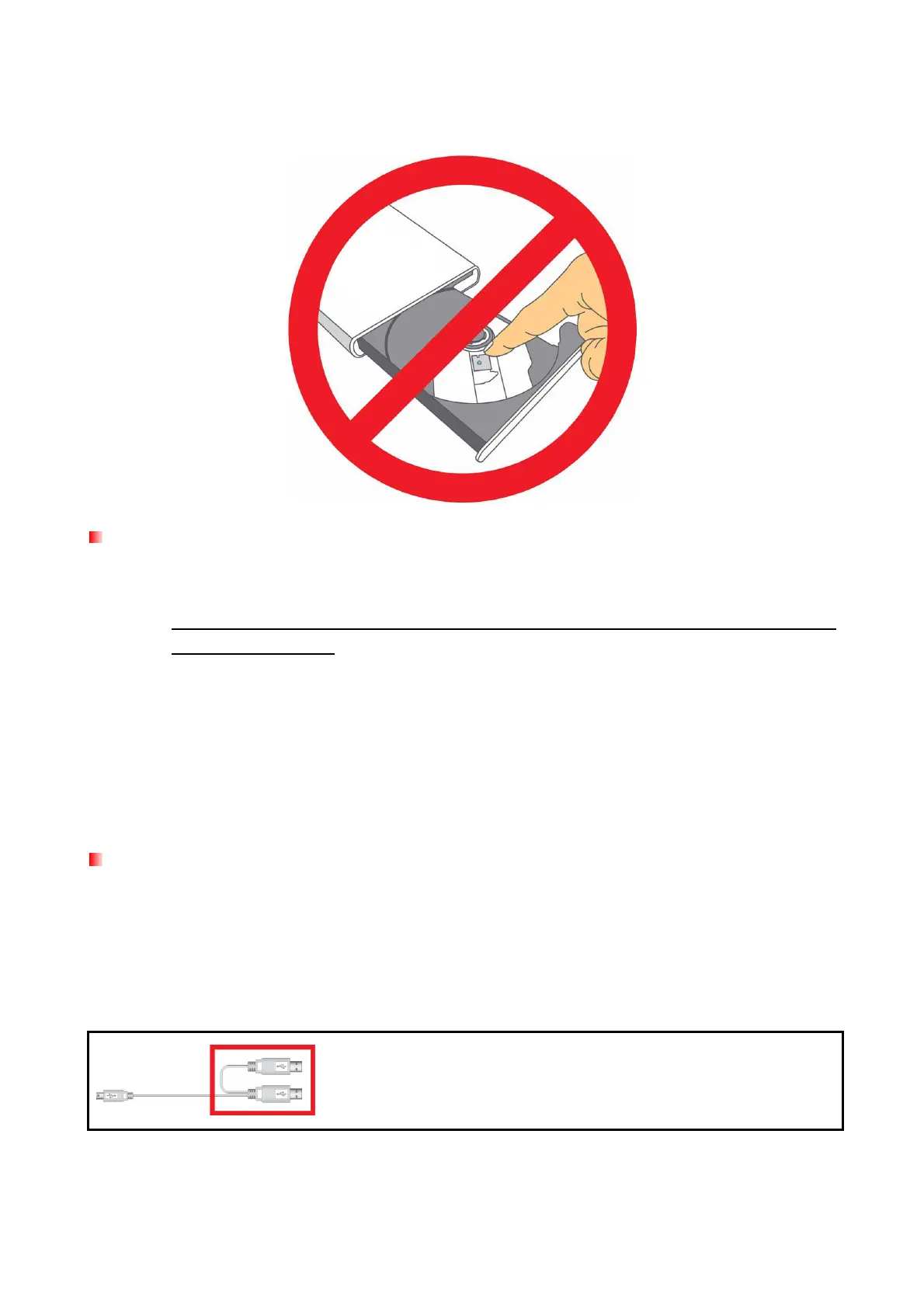 when using a single USB port. Please make sure to connect both large connector ends