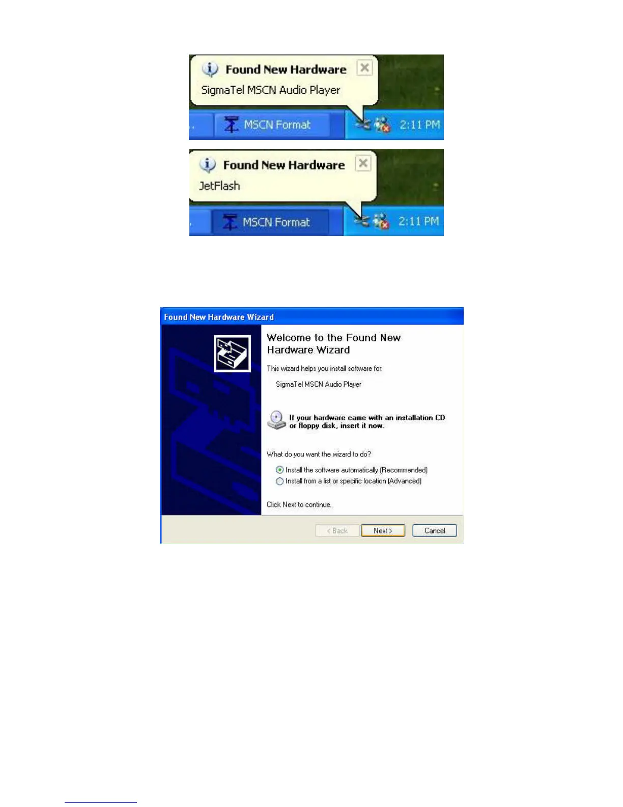 12. Found New Hardware Wizard window appears. Click Next to continue. (Only