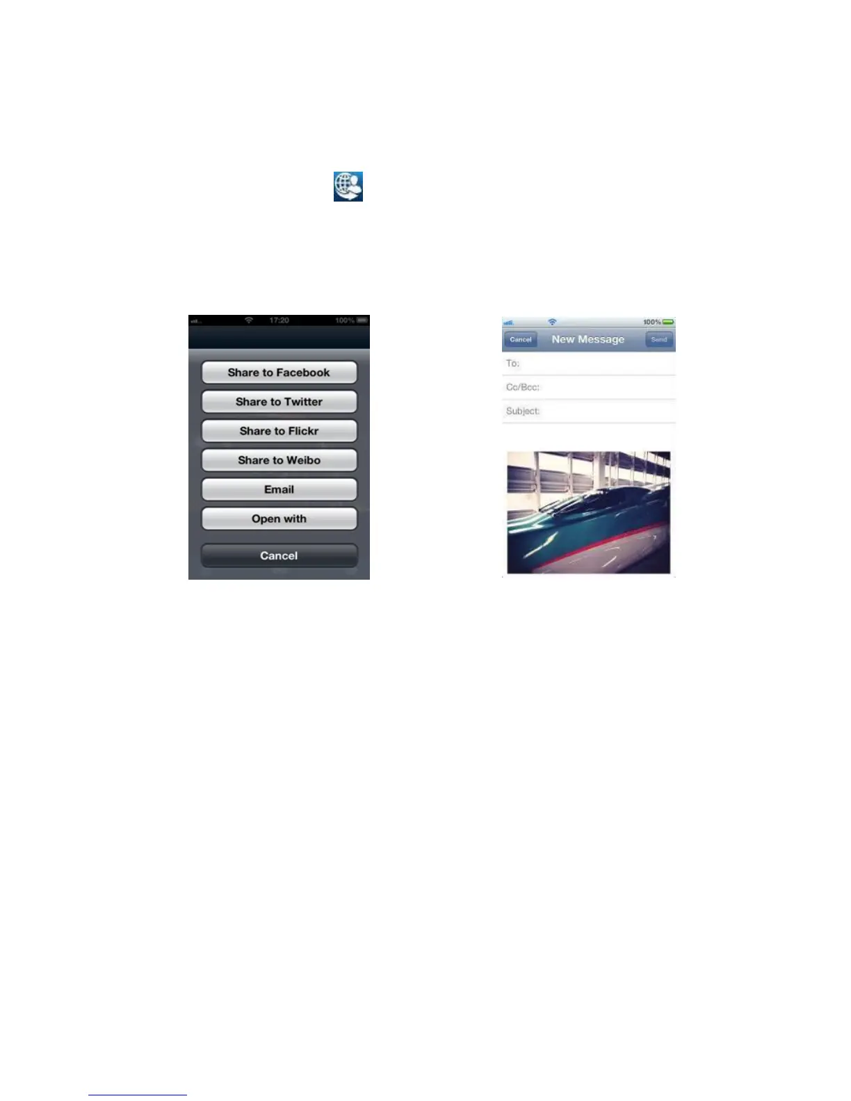 Note: Share button only appears in Internet Mode