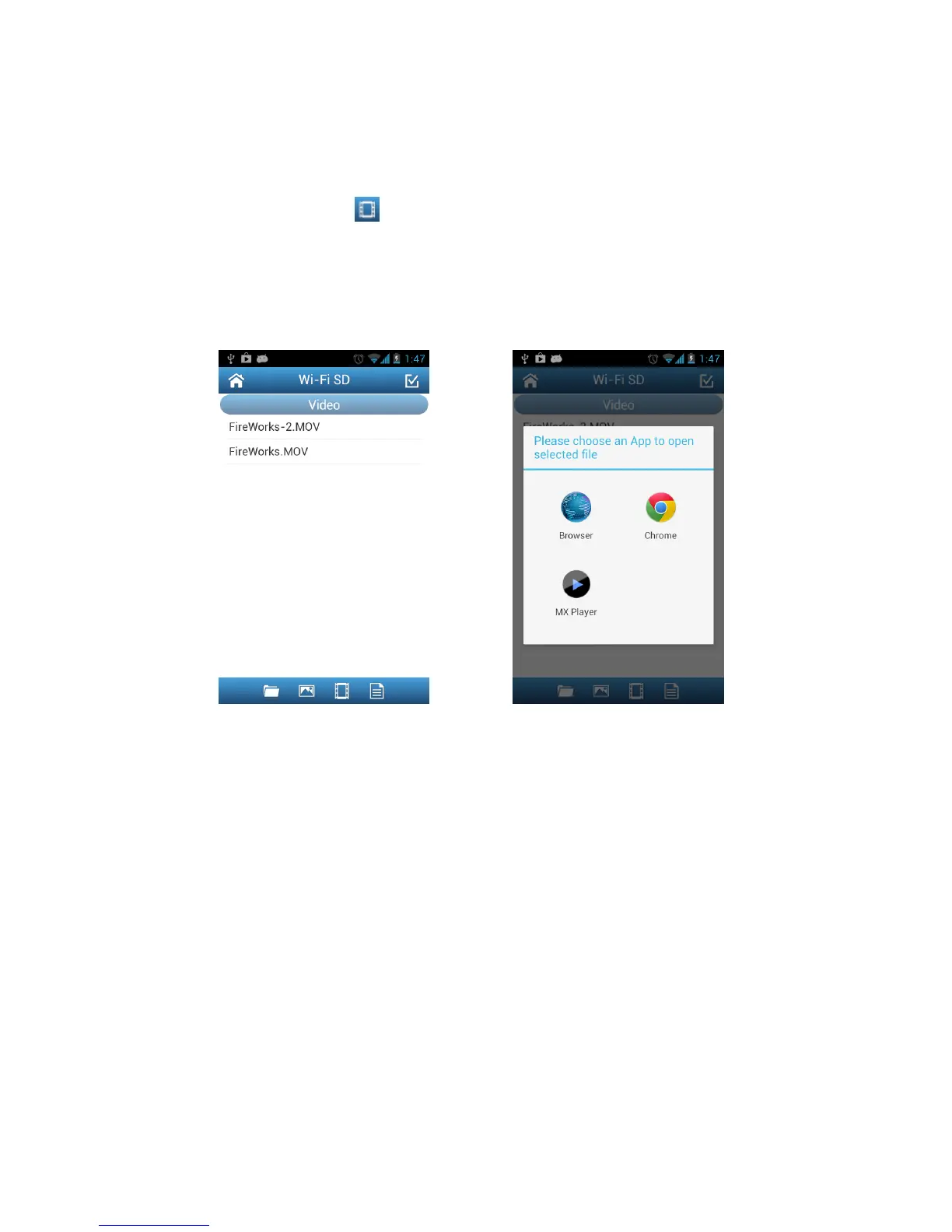 2. Tap the videos icon on the tool bar and select the desired video to view.