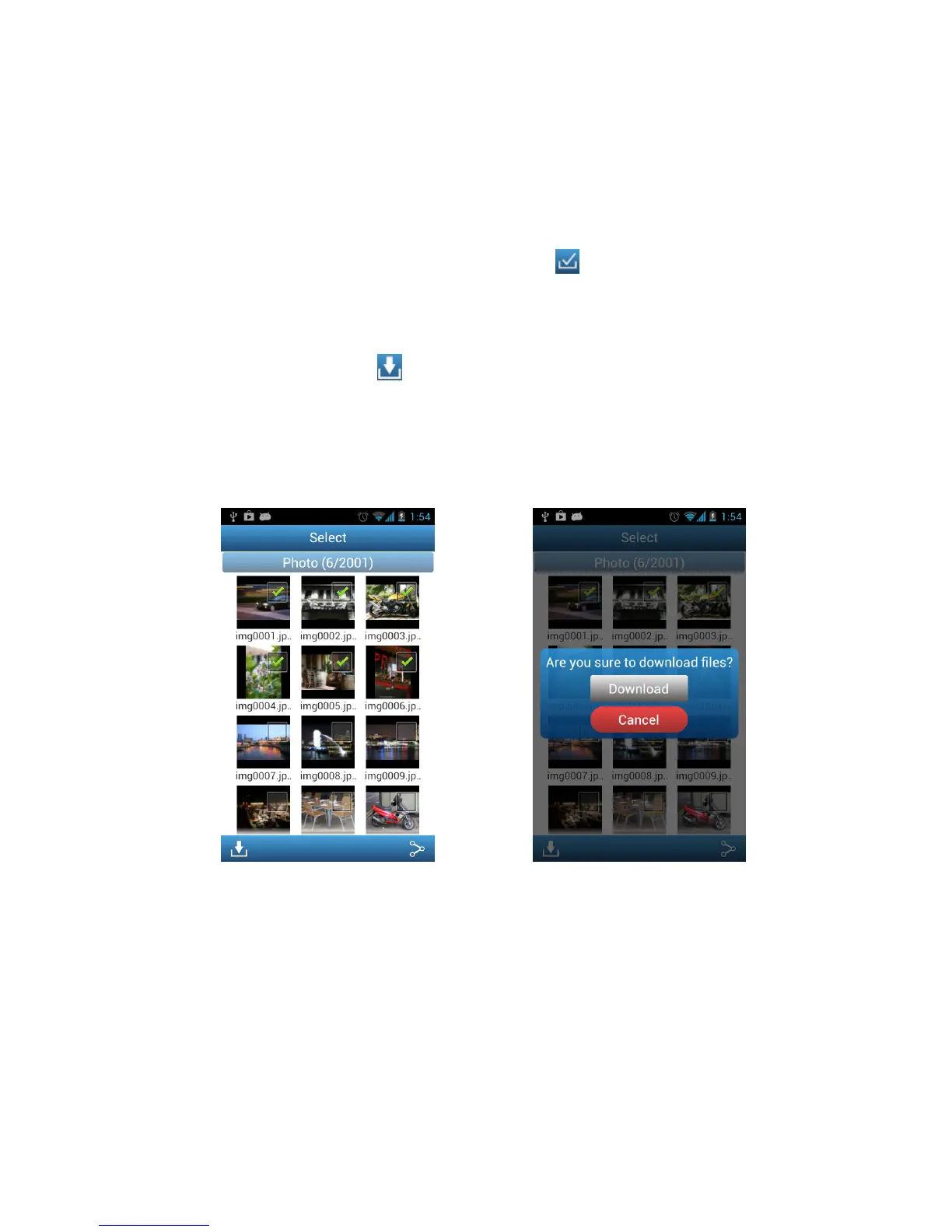 2. Select the desired files to download by tapping each photo or tap the Photo title